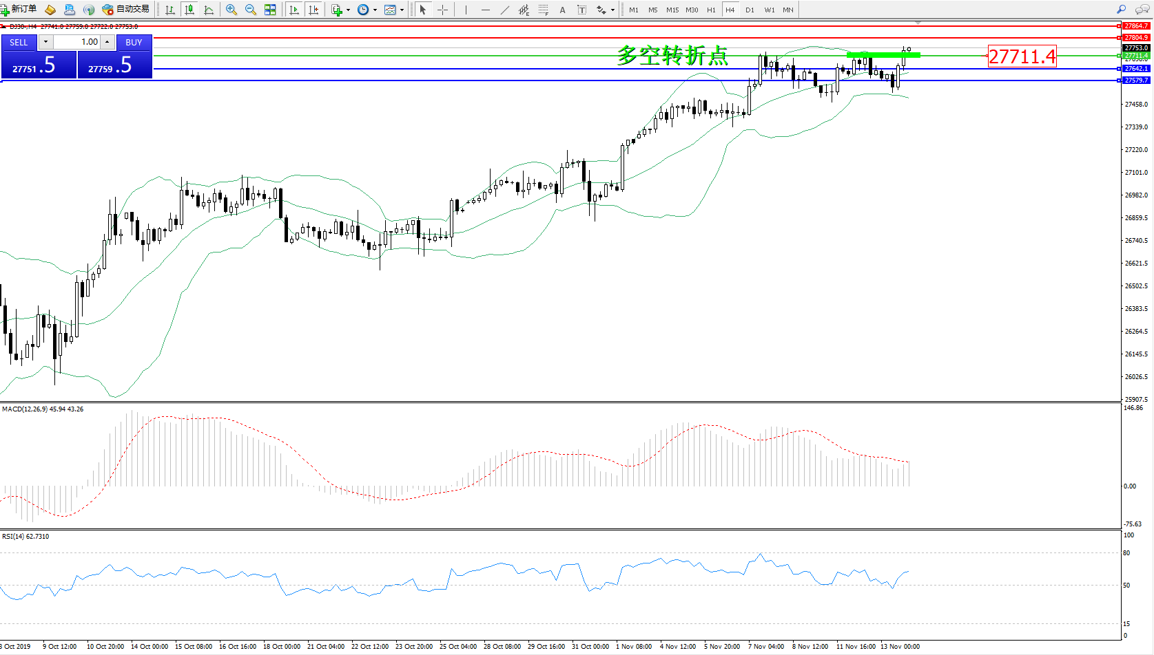 技术点评:高位维持宽幅震荡后多头动力突破布林带指标上轨有继续上行态势,且布林带指标处于张口走势中,MACD指标多头区域震荡回撤下行后有上移迹象,RSI指标处于高位回撤至50均衡线后断上扬;