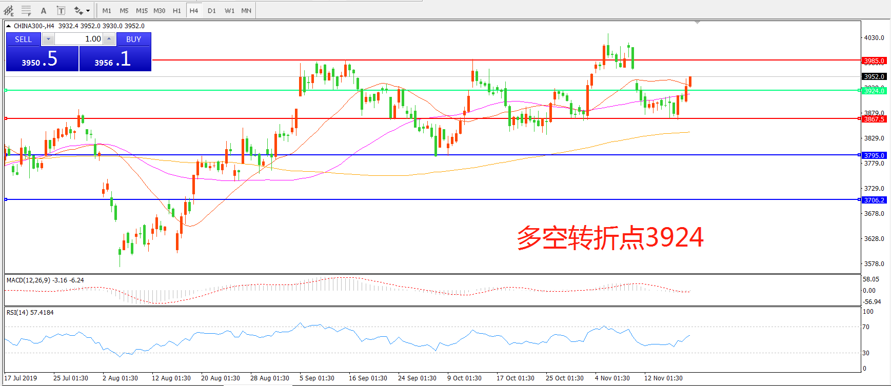 沪深300指数CHINA300 4小时图