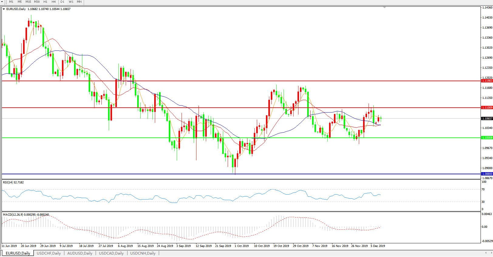 欧元兑美元在周一进入欧洲时段后开始小幅震荡反弹,收复了上周五因美国非农数据向好后美元指数走强仍录得的跌幅。在市场此前已经计入了美联储按兵不动前景的背景下,投资者当前同样也趋向于押注欧洲央行本周四会议上不会有进一步的宽松预期,新行长拉加德仍将继续谨慎行事,这也阻止了欧元汇价进一步回调;与此同时,欧元汇价还受到年底之际欧元区国家财政政策的支撑,日内,意大利方面在财政问题上给出了积极措辞,令市场所担心的该国赤字风波重燃风险被排除。同时,市场也在德国社民党改选之后,押注该党会向政府施压,迫使其扩大刺激力度。这同样对欧元构成利多,并且,英国大选有望顺利落幕,这将推动脱欧有序完成,对欧元区而言,这也是外部利多;在此状况下,欧元兑美元短线仍有上行空间,目标在前期高位1.1116,但更上方仍面临下行趋势压力,只有在上破200日均线切入位1.1157的压制之后,行情才有望迎来中期反转。