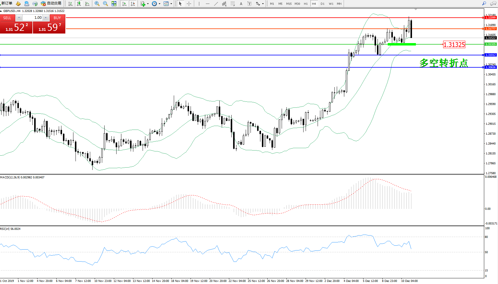 交易策略:1.31325上方看涨,目标1.31777、1.32099