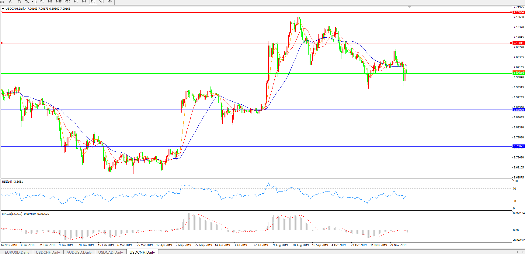 美元兑人民币USDCNH    日线图: