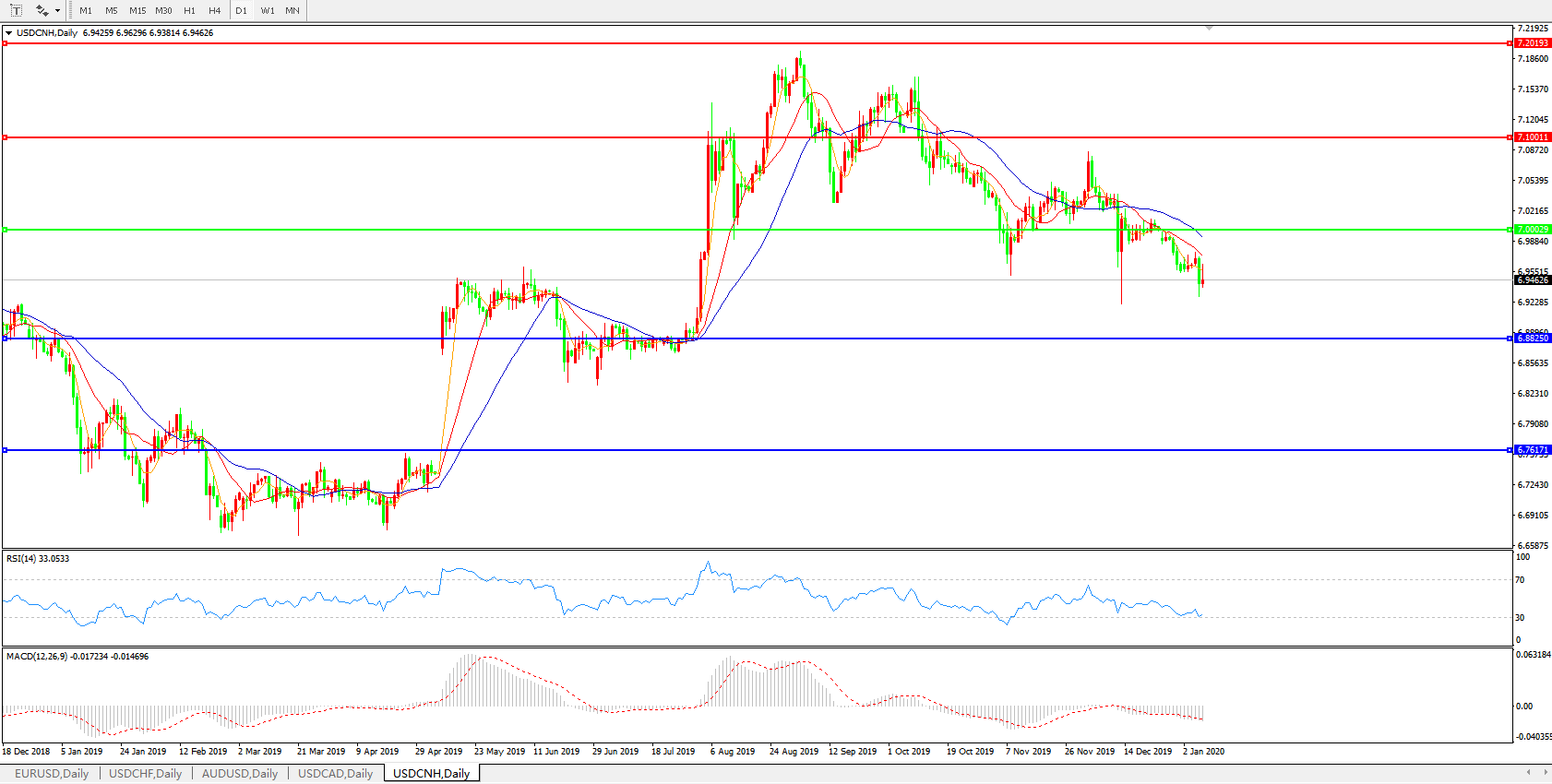 交易策略: 在7.0000之下,看跌,目标价位为6.8820,然后为6.7600。