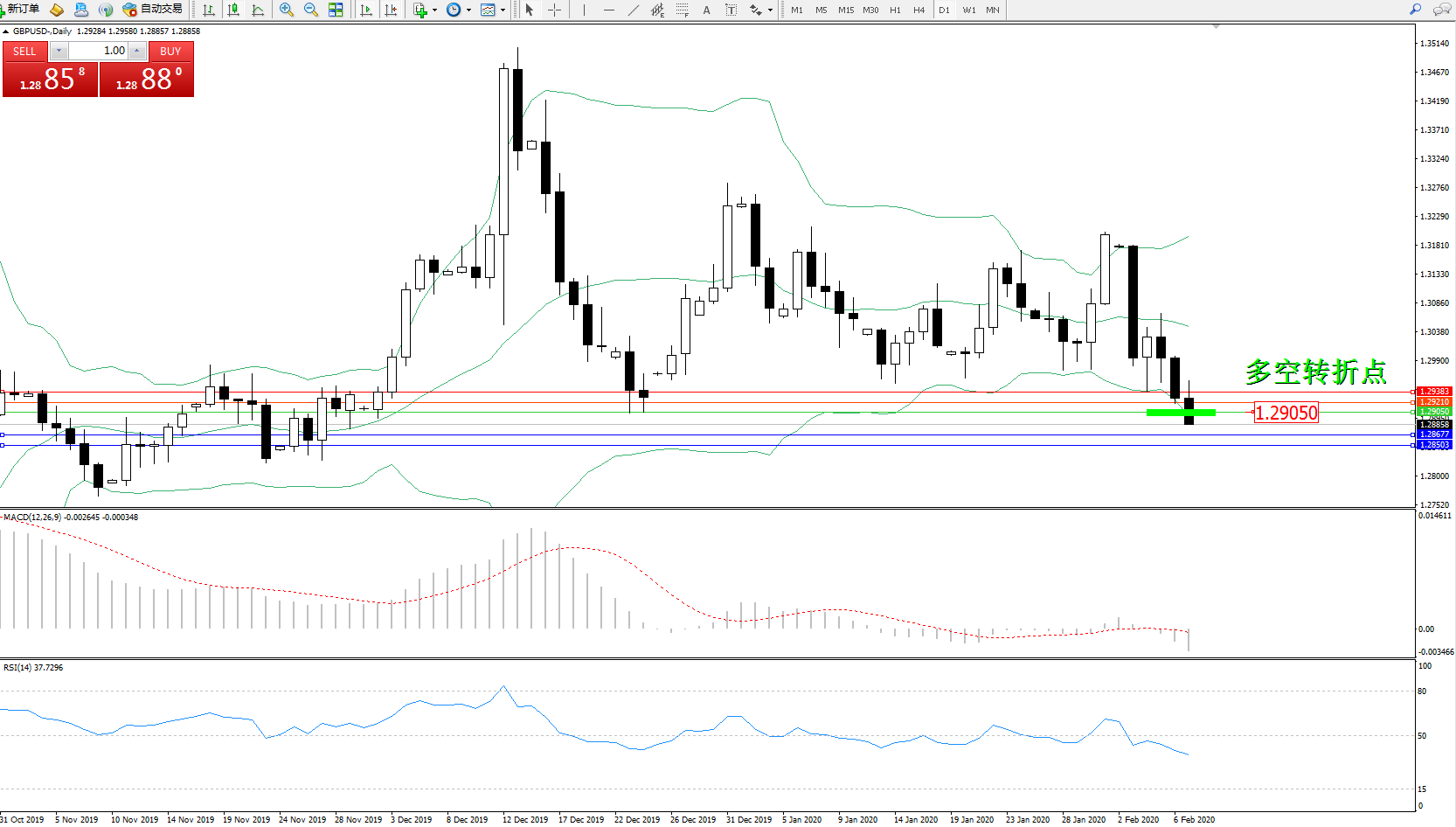 交易策略:1.29050下方看跌,目标1.286771.28503