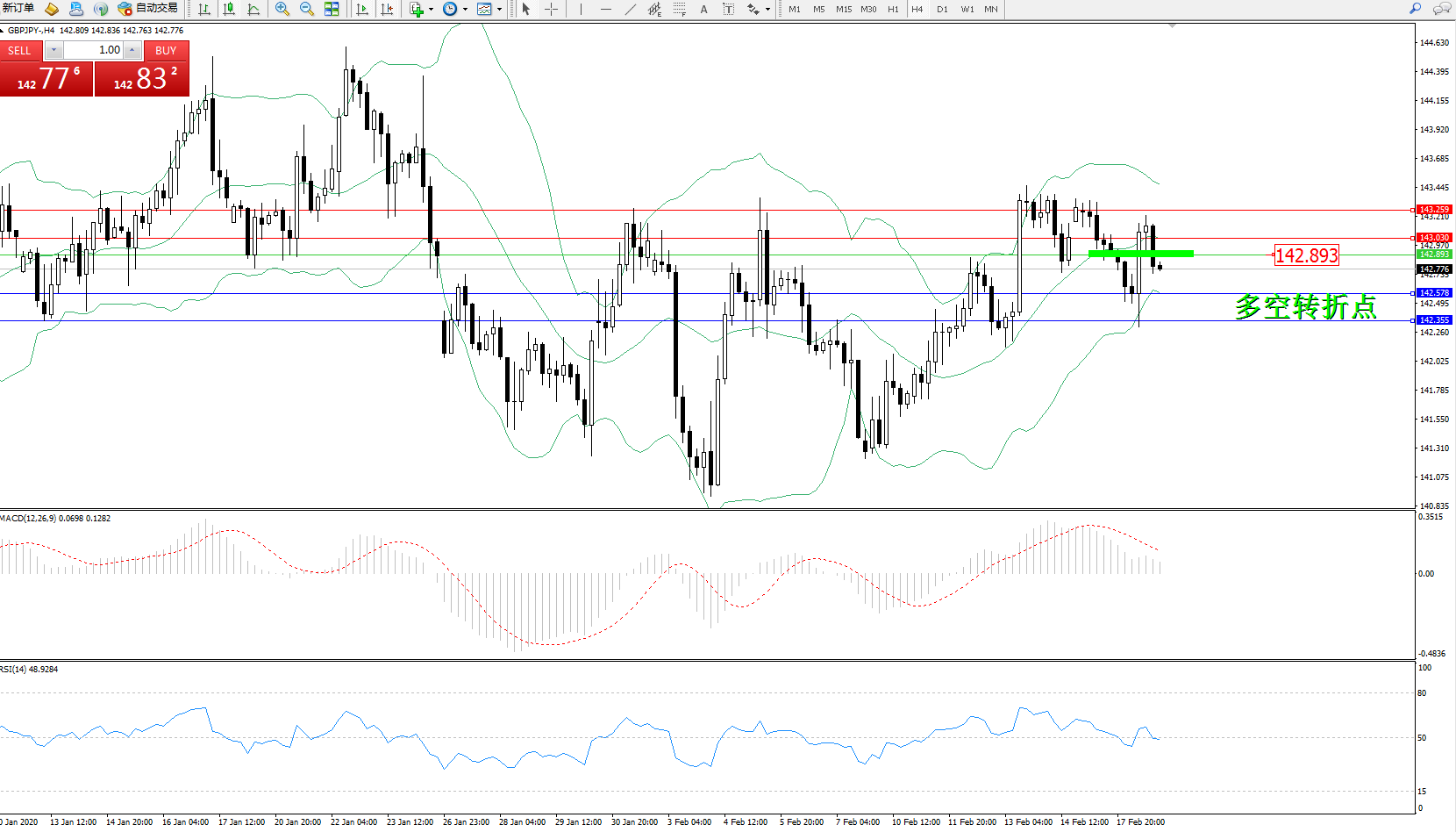 交易策略:142.893下方看跌,目标142.578142.355