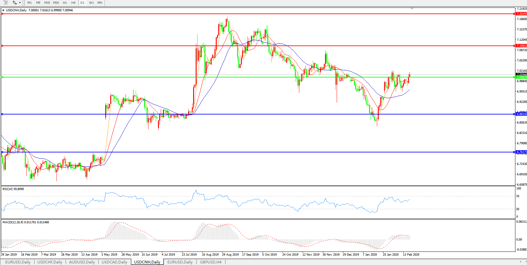 美元兑人民币USDCNH    日线图: