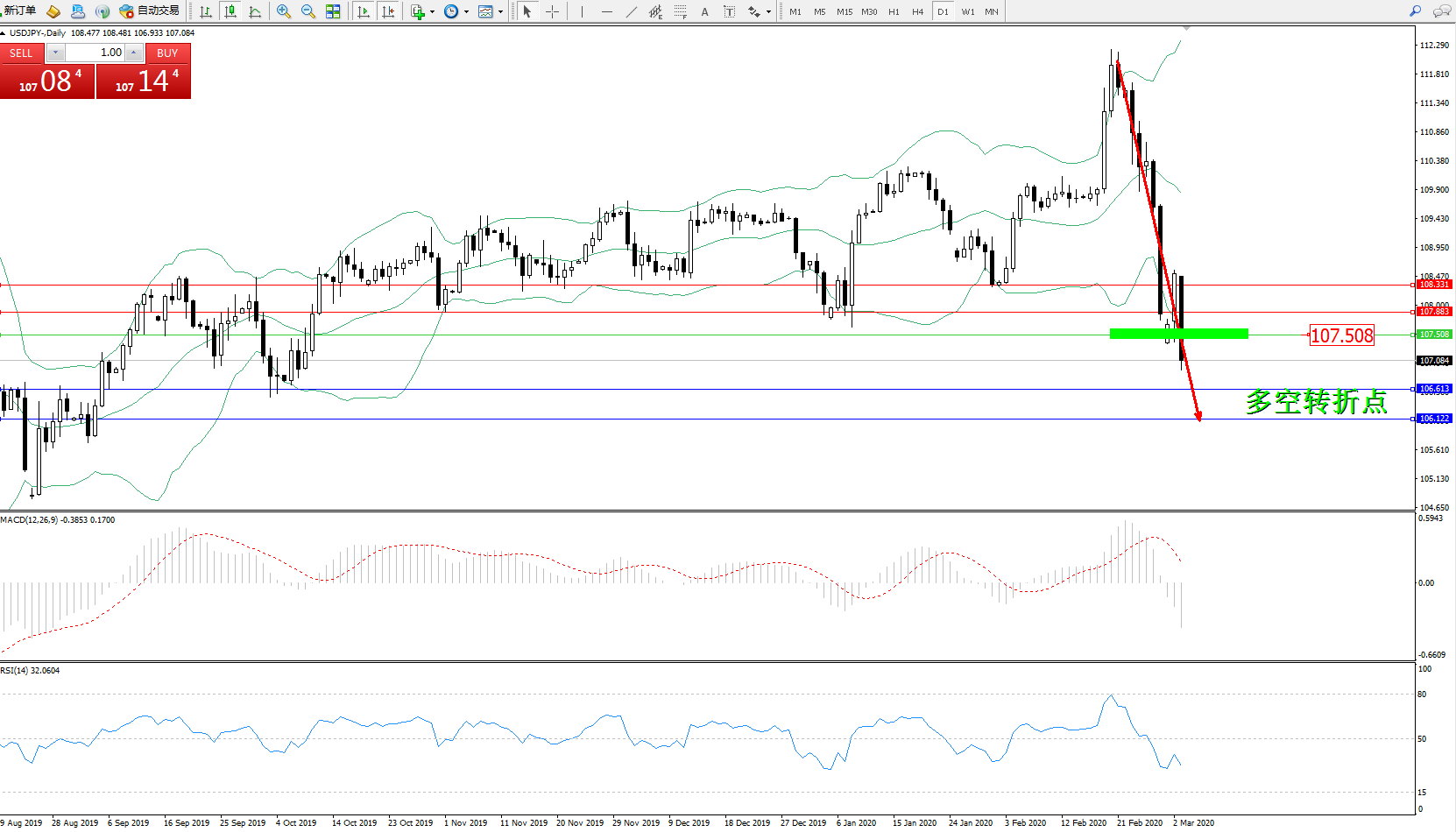 避险货币日元因投资者仍对公共卫生事件对经济的影响感到不安。美元兑日元下跌1.11%至107.13;随着美国10年期国债收益率跌至纪录低点、股市下跌、信贷息差扩大,日元升至盘中高点。由于日本央行的基准利率为负0.10%,且负利率的副作用已经显现,所以日本央行的政策空间也颇为有限。与美联储不同的是,尽管市场猜测日本经济再次陷入衰退,但近日日本央行没有暗示会进一步刺激经济。相反,该行强调的是旨在确保市场稳定的措施,例如购买交易所交易基金和使用特殊债券操作。如果经济风险持续存在,日本央行可能加强与外界的沟通,以显示出更大的宽松偏好,或者在声明措辞中提及卫生事件带来的风险。最终,如果其他央行都降低利率,日元走强或日本经济崩溃,日本央行可能也不得不加入降息行列。不过在2008年全球金融危机期间,日本没有参与协同降息行动。