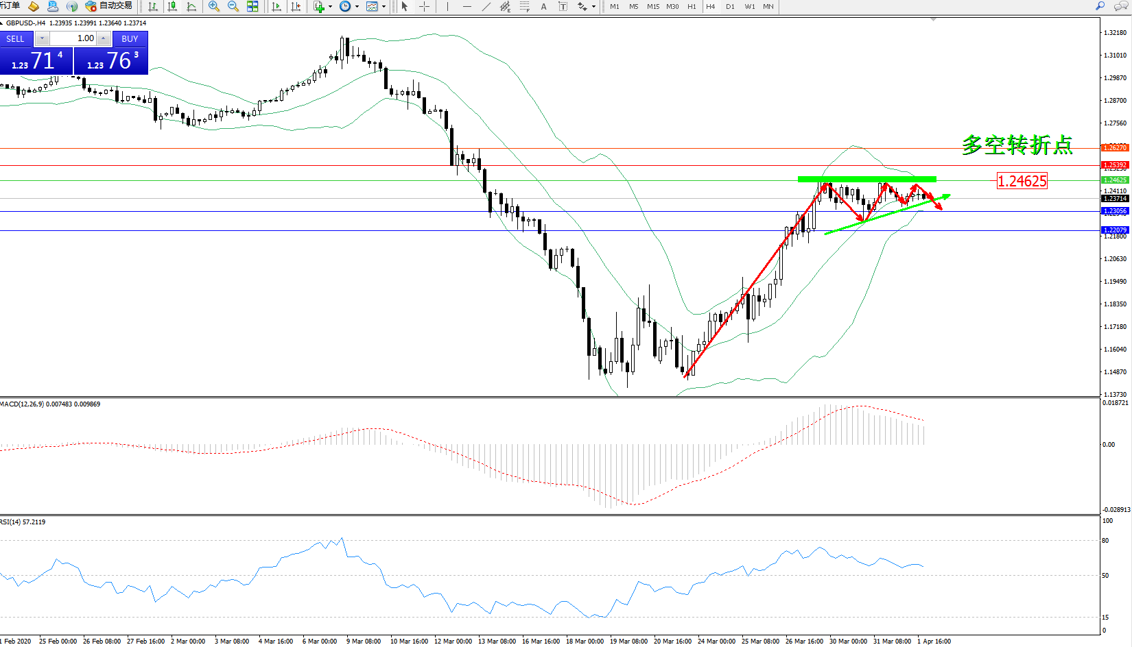 交易策略:1.24625下方看跌,目标1.23056、1.22079
