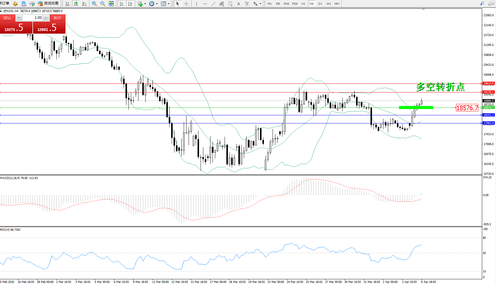日经225指数4月6日(周一)收盘上涨743.31点,涨幅4.17%,报18563.50点。全球新冠肺炎确诊病例已经突破127万例,疫情仍在继续恶化,这令风险资产吸引力有限,随着新冠病毒疫情在日本逐渐升温,日本首相安倍晋三最快于今日向公众表明宣布紧急状态的意愿,明天或后天就会正式宣布进入紧急状态,这可能短期对日本经济不利,此外日本央行为购买更多至关重要的5-10年期国债打下基础,表明对人们日益预计政府将通过发债来支撑其刺激措施之际,该行维持收益率曲线控制政策的意图。市场参与者此前普遍预期,和早前的较短期限操作一样,日本央行周一将减少购买规模。