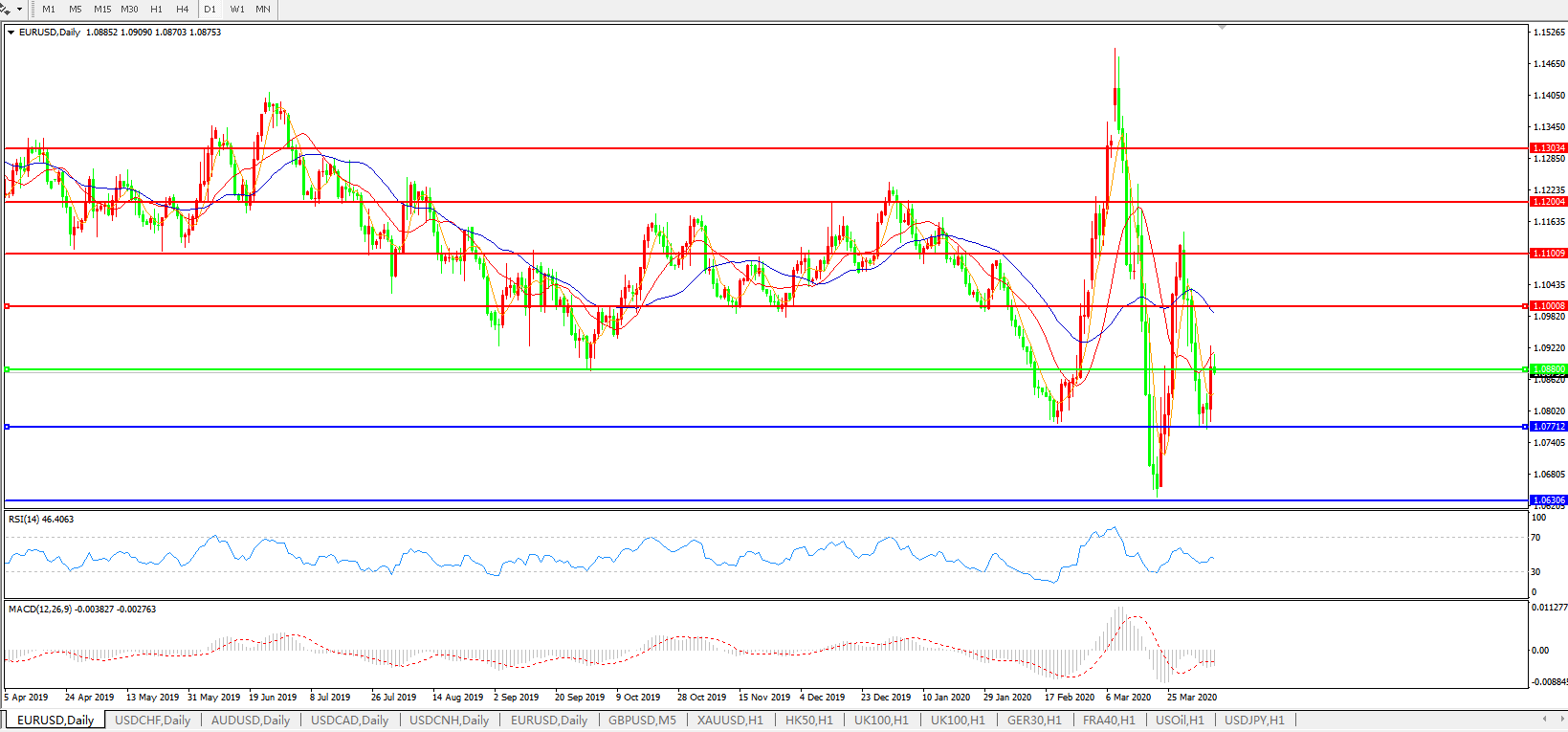 周二(4月7日)欧洲时段,欧元兑美元涨幅扩大到近1.2%,刷新三个交易日高位至1.0917,得益于美元指数大幅走弱;但欧洲国家正处于疫情最严重的阶段,意大利和西班牙死亡人数分别超过1.6万人和1.3万人,法国死亡病例也逼近9000;法国财政部长周一(4月6日)表示,法国经济今年可能出现自二战结束以来最严重的衰退,远远超过全球金融危机后出现的衰退;投资者等待日内稍后即将召开的欧元集团视频会议,欧洲央行行长拉加德将参与会议。预计欧元区官员将讨论联合发债事宜,以冲抵冠状病毒大流行带来的风险;尽管饱受疫情冲击的西班牙、意大利、法国都对此予以支持,但以德国、荷兰为代表的保守派强烈反对通过发债来提振经济,后者担心财政保守国家的纳税人将会分担财政激进国家的债务