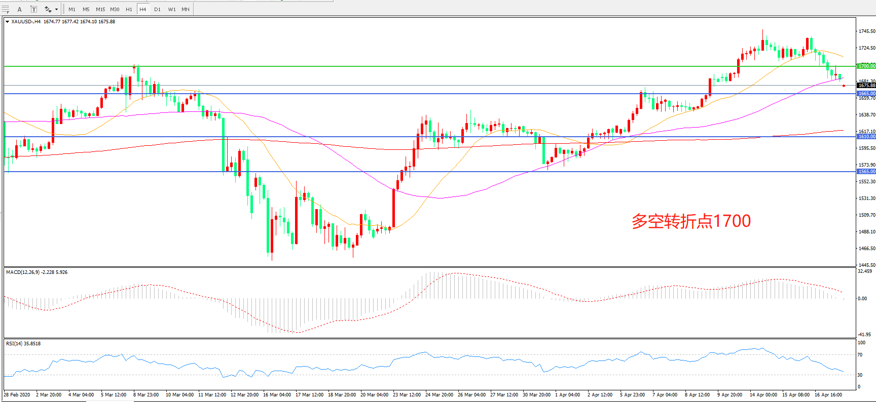 交易策略: 在1700.00 之下看跌,目标1665.00 1610.00