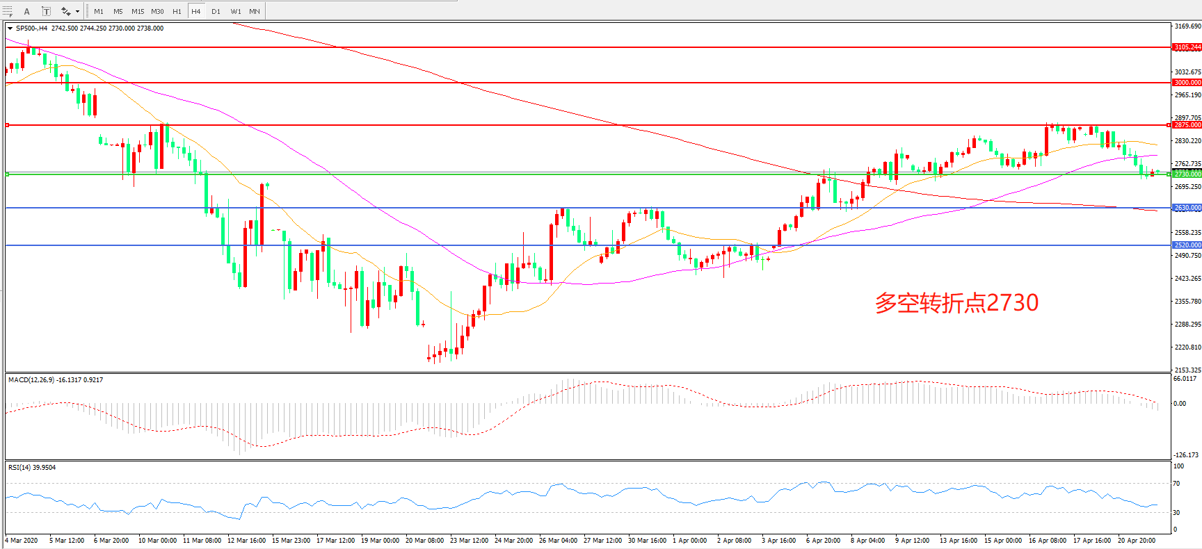 周二(4月21日),美国参议院达成新一轮救助方案协议,但原油期货连续下挫进一步加剧市场对于经济谁退担忧的恐慌情绪,能源股全线崩盘,美股再度收跌,标普震荡下行,收报2741.75点。