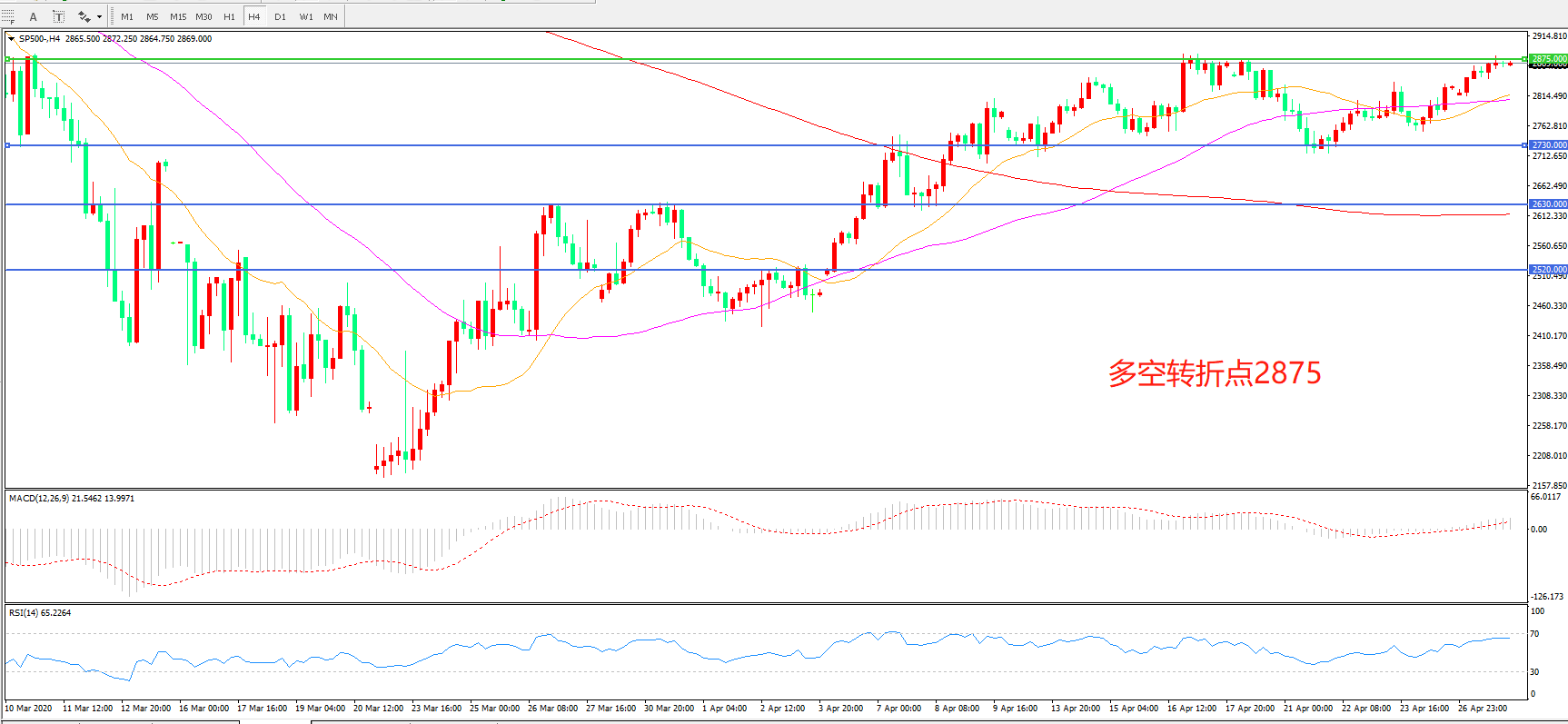 周一(4月27日),美国重启经济预期及全球央行撒钱计划提振市场情绪,标普全线收涨,报2865.75点。领涨标普500指数,而昨日的涨幅也令标普500指数创下了自1987年以来的最大单月涨幅。