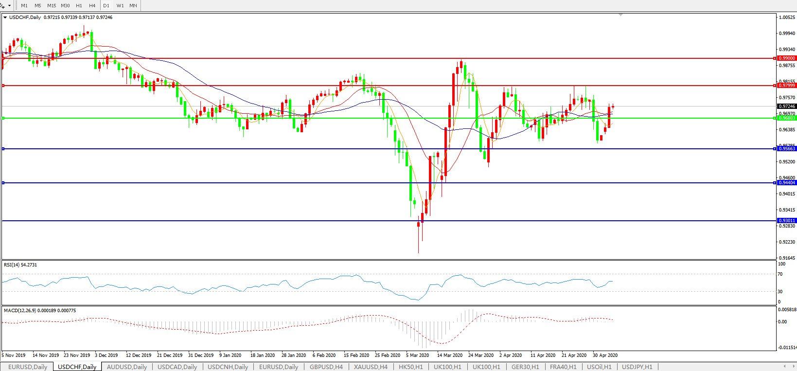 美元兑瑞郎USDCHF 日线图: