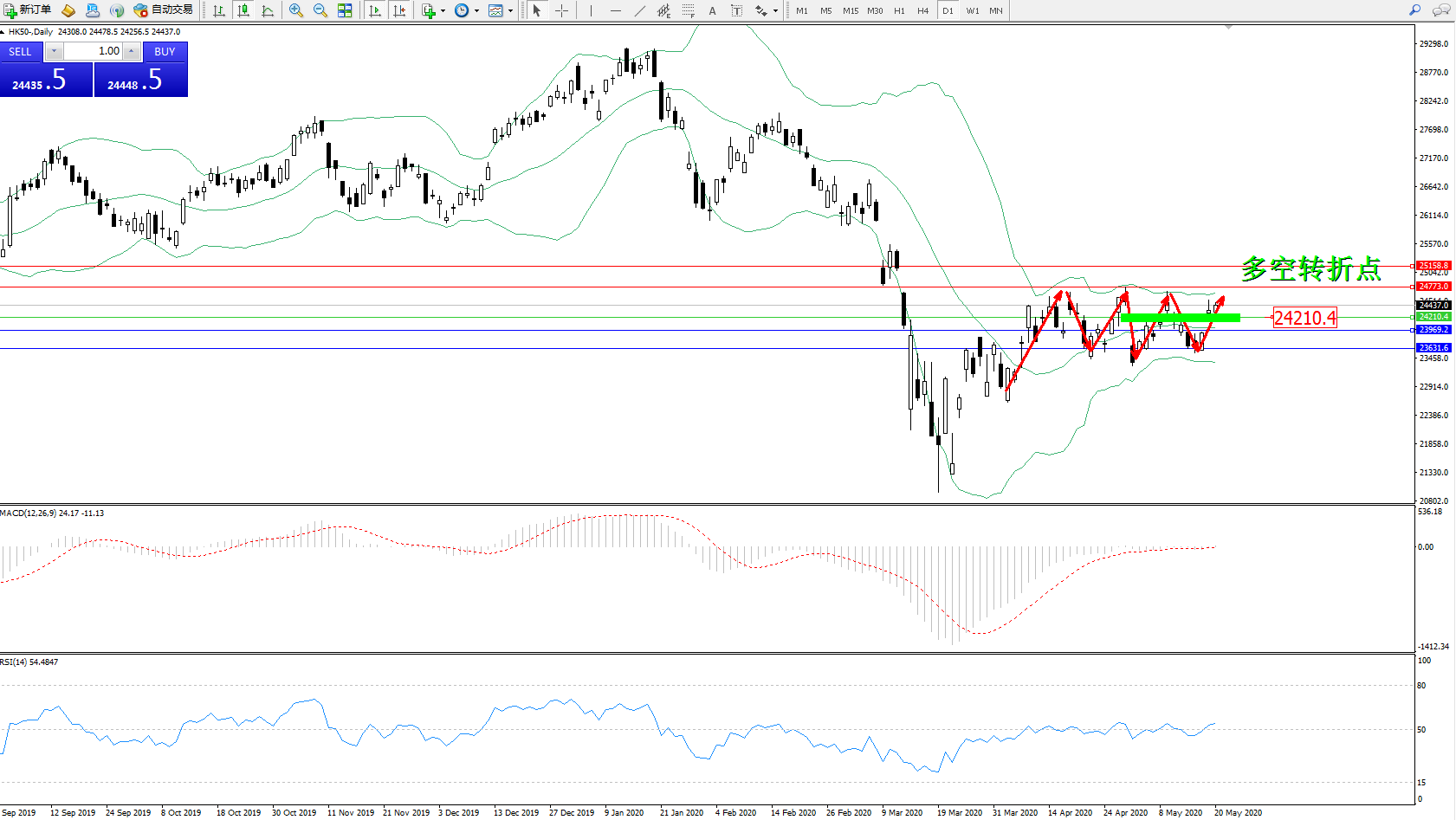 香港恒生指数5月20日(周三)收盘上涨11.82点,涨幅0.05%,报24399.95点;医疗设备股、生物医药B类股继续强势,微创医疗、威高股份等多股续创新高,信息科技顾问、医疗及医学美容服务、医疗保健设备、家居装修零售商、出版等5个板块领涨,从沪深港通南北资金流向看,截至发稿,南向资金净流入18.61亿元,其中沪港通净流入7.13亿元,当日资金余额为412.87亿元,深港通净流入11.48亿元,当日资金余额为408.52亿元。国际与本土资金各行业的持股市值与港股上市公司的市值分布大体一致,持股最多的金融、信息技术、房地产与可选消费,在港股所占市值权重也最大。南下资金更偏好于金融、医疗和硬件科技公司,剔除建行、工行后,南下持股偏向于医疗保健、信息技术与可选消费。