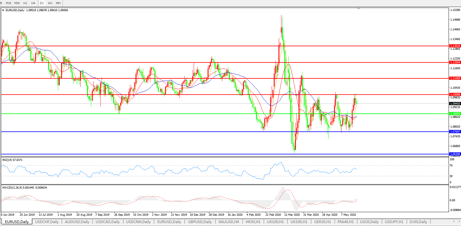 欧元区最新制造业PMI初值数据仍徘徊于低位,对行情拉动效果有限。随着政府为遏制病毒蔓延而采取的一些封锁措施有所放松,新冠疫情对欧元区经济的破坏性影响本月略有减弱。IHS Markit首席商业经济学家Chris Williamson表示,欧元区5月企业活动进一步下滑,但调查数据至少带来了令人放心的迹象,表明经济低迷可能在4月触底。第二季度GDP仍有可能以前所未有的速度下降,与第一季度相比下降约10%,但PMI指数的上升增加了人们的预期,即进入夏季,随着封锁限制进一步解除,经济放缓应当会有所好转。