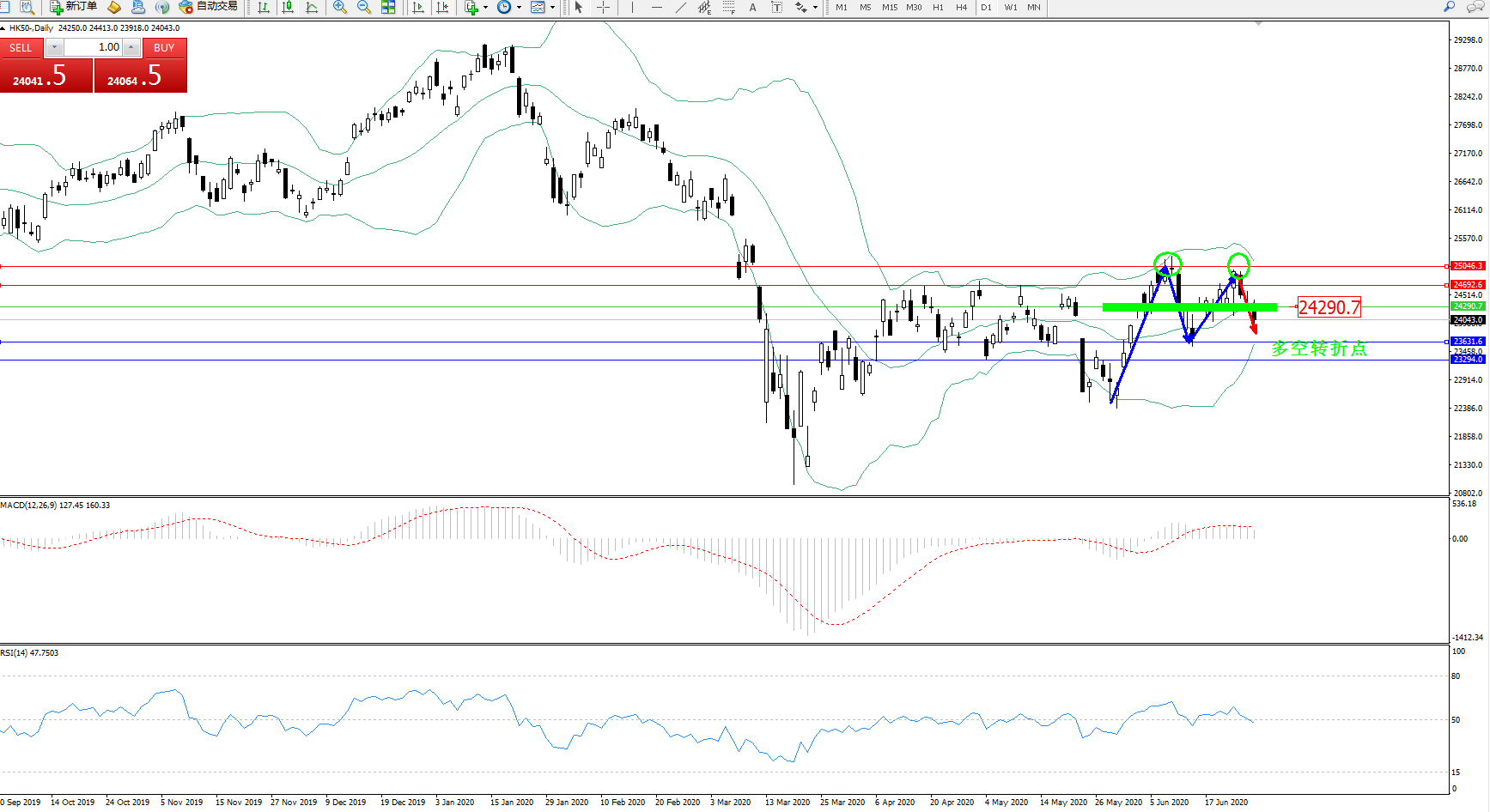 香港恒生指数6月29日(周一)收盘下跌248.71点,跌幅1.01%,报24301.28点;港股三大指数均现高开低走行情,市场整体表现疲弱。国指跌0.97%报9757点。南下资金逆势净流入22.54亿港元,大市成交额为1330.19亿港元。前期强势的半导体板块回落大跌,中芯国际跌7%;内险股全线下挫。腾讯早盘升近2%,尾盘回落小幅收涨;康基医疗首日上市暴涨98.85%。端午节期间,外围股市跌声一片,下跌因素大家都很清楚,无非是公共卫生事件的再度发酵加上美国对欧盟发起的关税战等等。市场传银行将拿券商牌照,导致券商股集体下跌。对于这个消息,证监会没有肯定也没有否认。而银行方面包括中行和建行的表态都是:未了解相关信息。