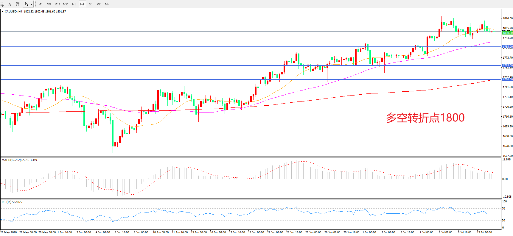 多空转折点:1800.00