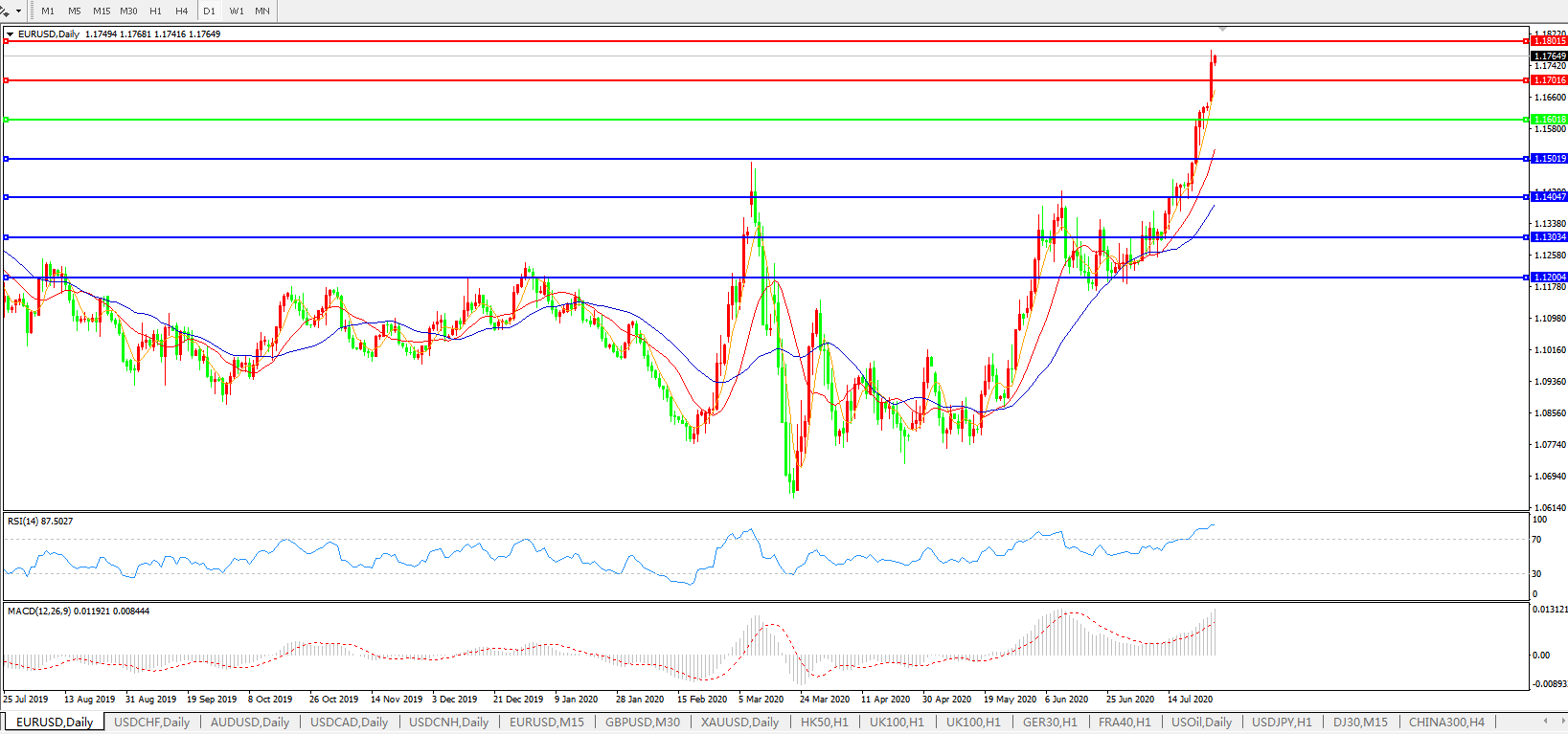 OANDA高级市场分析师Edward Moya称,看起来美元正在失去桂冠,人们对美联储将继续暗示准备在更长时间内采取更多行动寄予很高的希望,且美国经济的复苏将不会像欧洲那样一帆风顺。欧元兑美元上涨0.82%至1.1752,连续第七日攀升,盘中稍早触及2018年9月来最高的1.1781美元。Moya称,如果欧洲能够遏制疫情的任何反弹,欧元兑美元可能会扩大涨幅至1.20;我认为,你将看到稳定的投资和市场布仓回到欧洲,这将为美元进一步走软提供一些空间。