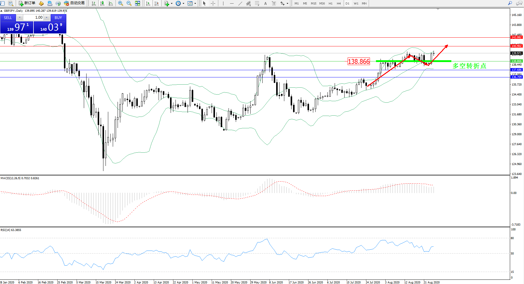 英镑兑日元刚刚触及140.00关口,英国与欧盟第七次也是最后一次脱欧谈判失败,与英国企业谨慎乐观情绪逆向而行。不过和之前几次一样,交易员们始终认为无协议脱欧是不可能发生的。欧元区经济前景不确定性增加。自欧洲多国解除封锁措施、重启经济以来,欧洲多项经济数据出现回升。但目前伴随着英国、德国、法国等多国疫情再度亮起“红灯”,欧洲经济前景因此“蒙尘”。欧洲央行首席经济学家菲利普·莱恩在8月早些时候警告称,有关疫情的不确定性将在一段时间内给消费者和企业带来压力。