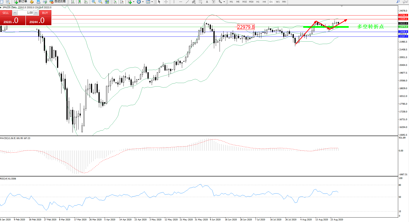 日经225指数8月27日(周四)收盘下跌88.86点,跌幅0.38%,报23202.00点。全球股市上涨到接近历史高点的位置,部分原因是疫苗研发有望取得突破的乐观情绪。日本经济复苏需要长达四年的时间。哥伦比亚大学教授伊藤隆敏表示,如果真的能发明疫苗,日本经济能以预期更快的速度修复疫情造成的经济下滑。日本第二季的经济数据令人震惊,但与金融危机相比,疫情的影响可能更强烈,但影响的时间则更短。他同时还指出,日本各种经济数据出现好转,这表明该国经济已经从5月份的底部反弹。即使安倍首相因健康问题辞职,黑田东彦也不应该考虑从日本央行辞职。最近几天安倍首相多次入院,引发了人们对其健康状况的猜测,尤其是考虑到他之前曾因病辞去过一次首相职务。除非有一些严重的原因阻止他继续工作,否则日本央行行长黑田东彦不应该辞职,这将威胁到日本央行未来的独立性。