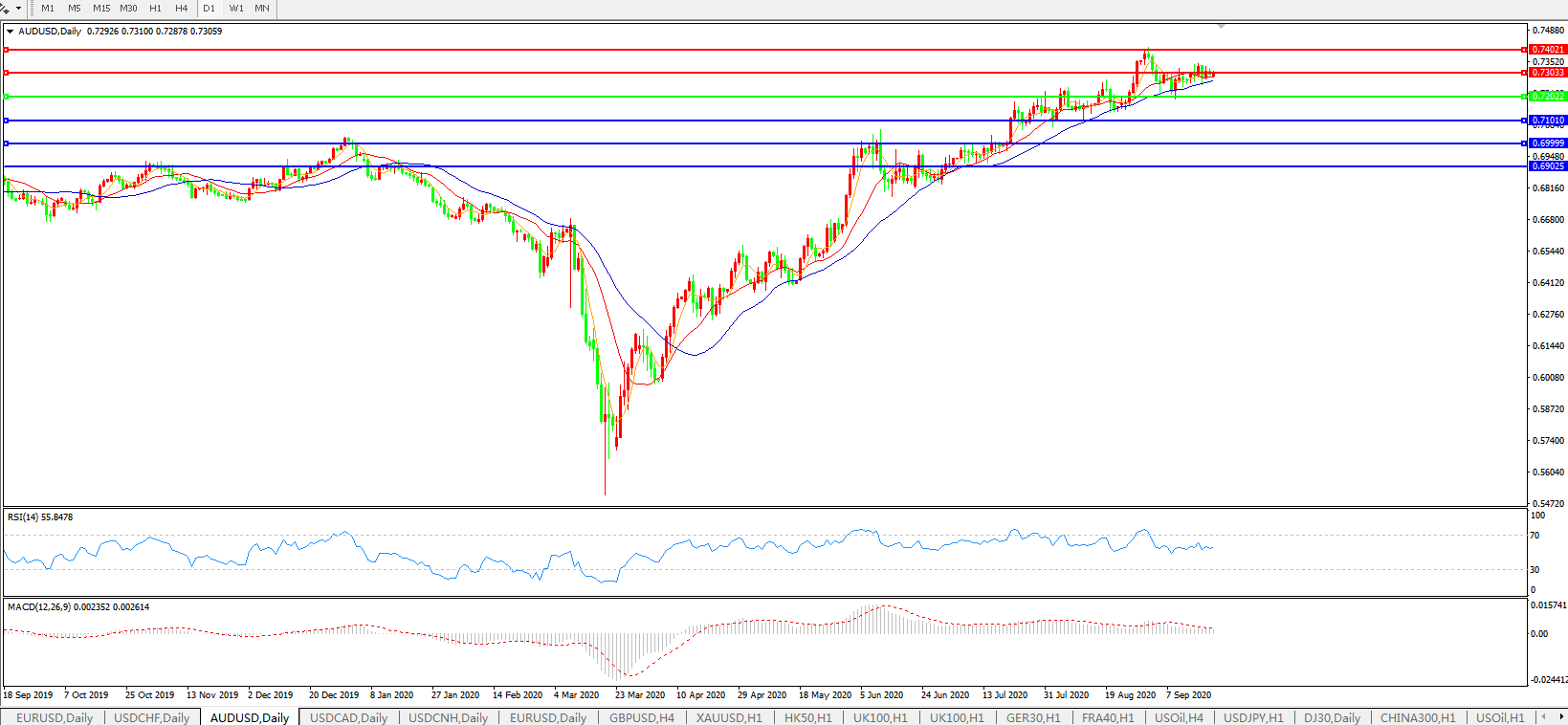 交易策略:0.7200上方看涨,目标0.7300、0.7400