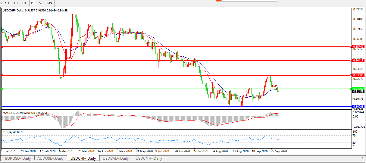 交易策略:0.9170下方看跌,目标0.9000、0.8950