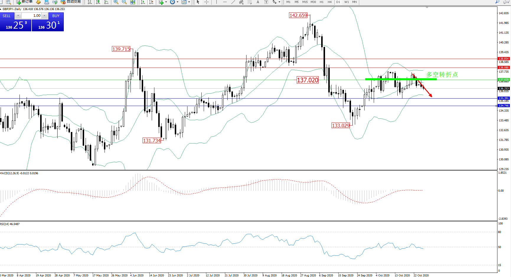 英镑兑日圆高位回撤至136.124附近整理,英国国家统计局发布数据显示,英国英格兰和威尔士地区新冠确诊病例死亡人数连续六周上升,仅在刚刚过去的这一周,该数字上升了53%。统计数据显示,10月10至10月16这一周,英国新冠确诊病例死亡人数为10534人,该数字比前一周增加了580人。一方面美元指数在美国选情充满不确定性的背景下承压,另一方面,英国本土不断强化的疫情管控措施,加上仍然悬而未决的英国脱欧谈判进程,除非英国脱欧谈判出现令人喜出望外的即刻乐观进展,否则,即使美元指数受到美国选情干扰在未来一周继续承压。