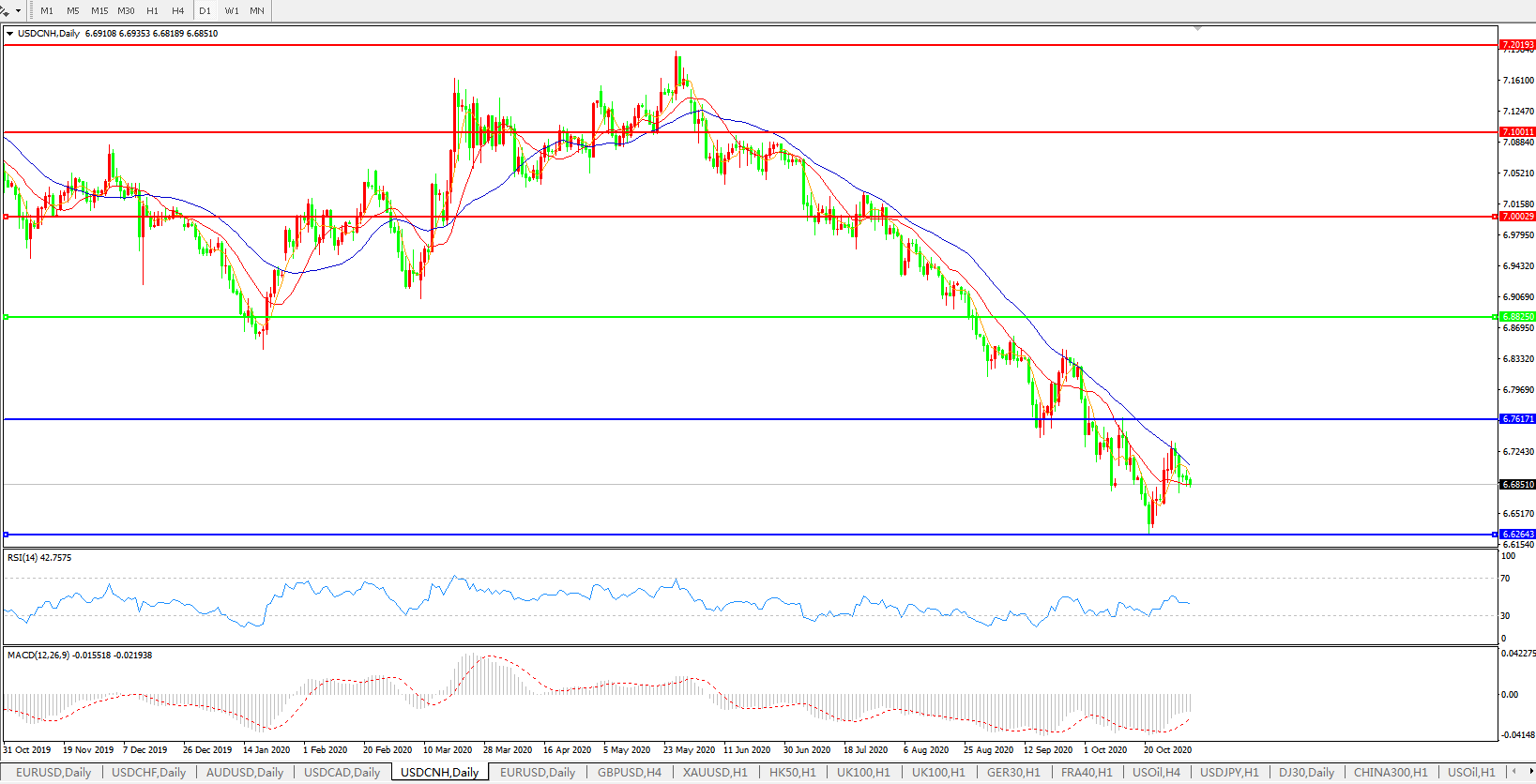 人民币兑美元即期周一收盘微升,中间价则升逾180点创近一周高点;交易员称,美国大选进入倒计时,成为市场情绪主要风向标,尽管对不同结果有所预期,甚至大选结果可能延迟公布,市场观望情绪浓重;瑞穗银行亚洲首席策略师张建泰称,进入美国大选的关键一周,将为今年剩余时间甚至未来几年的外汇走势设定风险基调,投资者对拜登的胜利保持乐观;若选举结果公布延迟,美元面临下行压力; 德法再度“锁国”,欧洲经济复苏再遭波折,招商银行金融市场部首席外汇分析师李刘阳称,欧美经济若呈现美强欧弱,欧元或遭遇新一轮抛售;特朗普四年前意外胜选令市场动荡,如今在周二美国大选前夕,投资人为短期交投震荡及长期政策大转弯预做准备; 全球汇市方面,美元周一持稳,投资者准备迎接周二的美国大选,在此同时全球新冠病例激增继续打压人气;美元守住涨幅,上周录得9月底以来最大周线涨幅;澳洲联邦银行(CBA)分析师报告中表示,汇市波动性可能持续至选举日之后,因为败选者对选举结果提出异议的机会很高,2000年大选花了约一个月时间才解决胜负争议