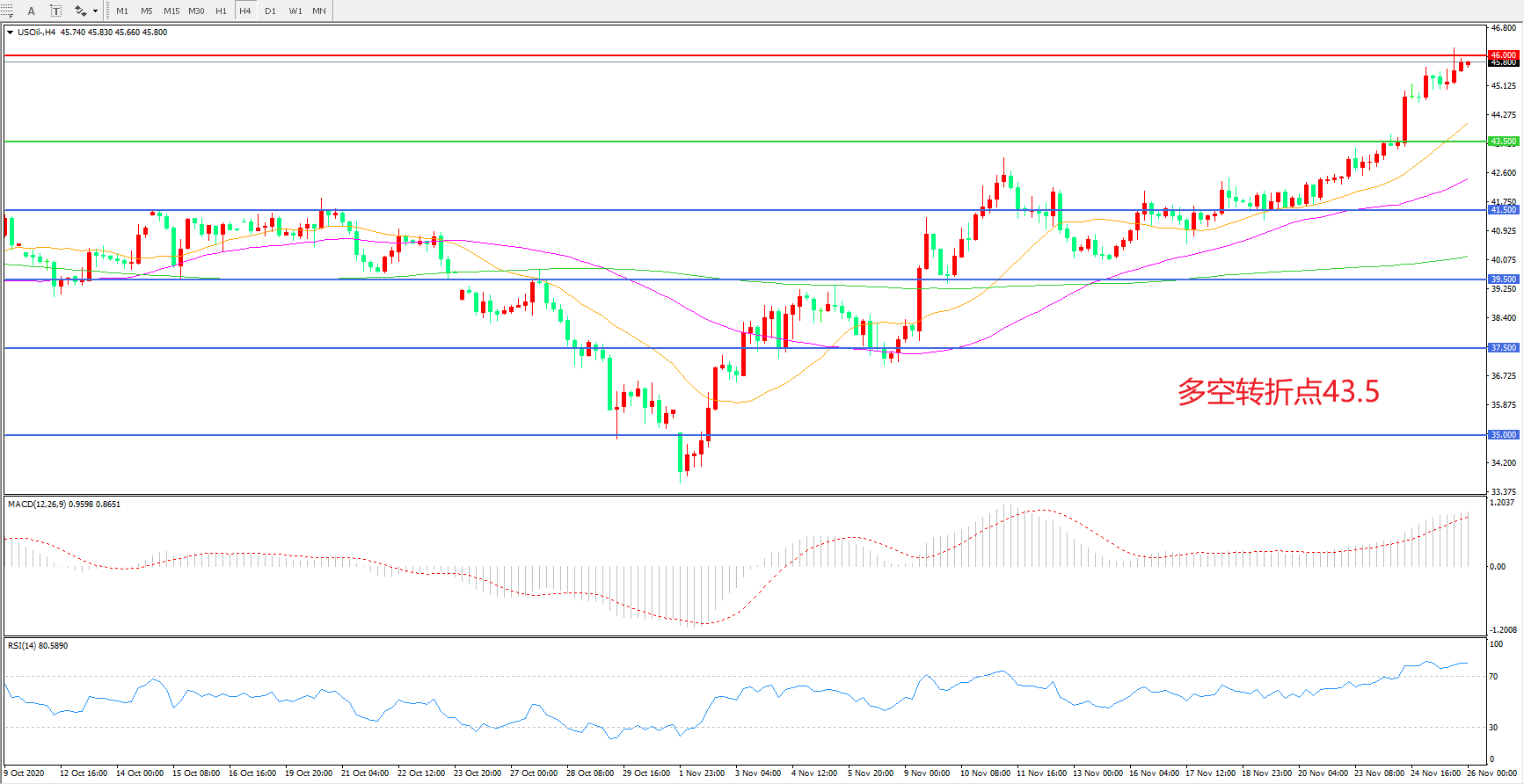 多空转折点:43.50