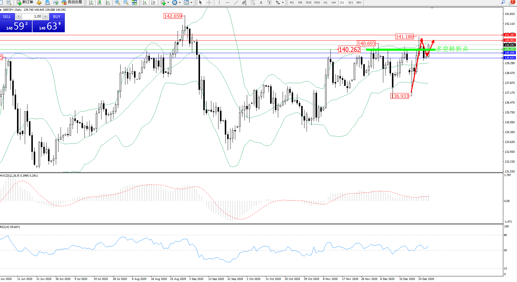 交易策略:140.262上方看涨,目标140.903、141.287