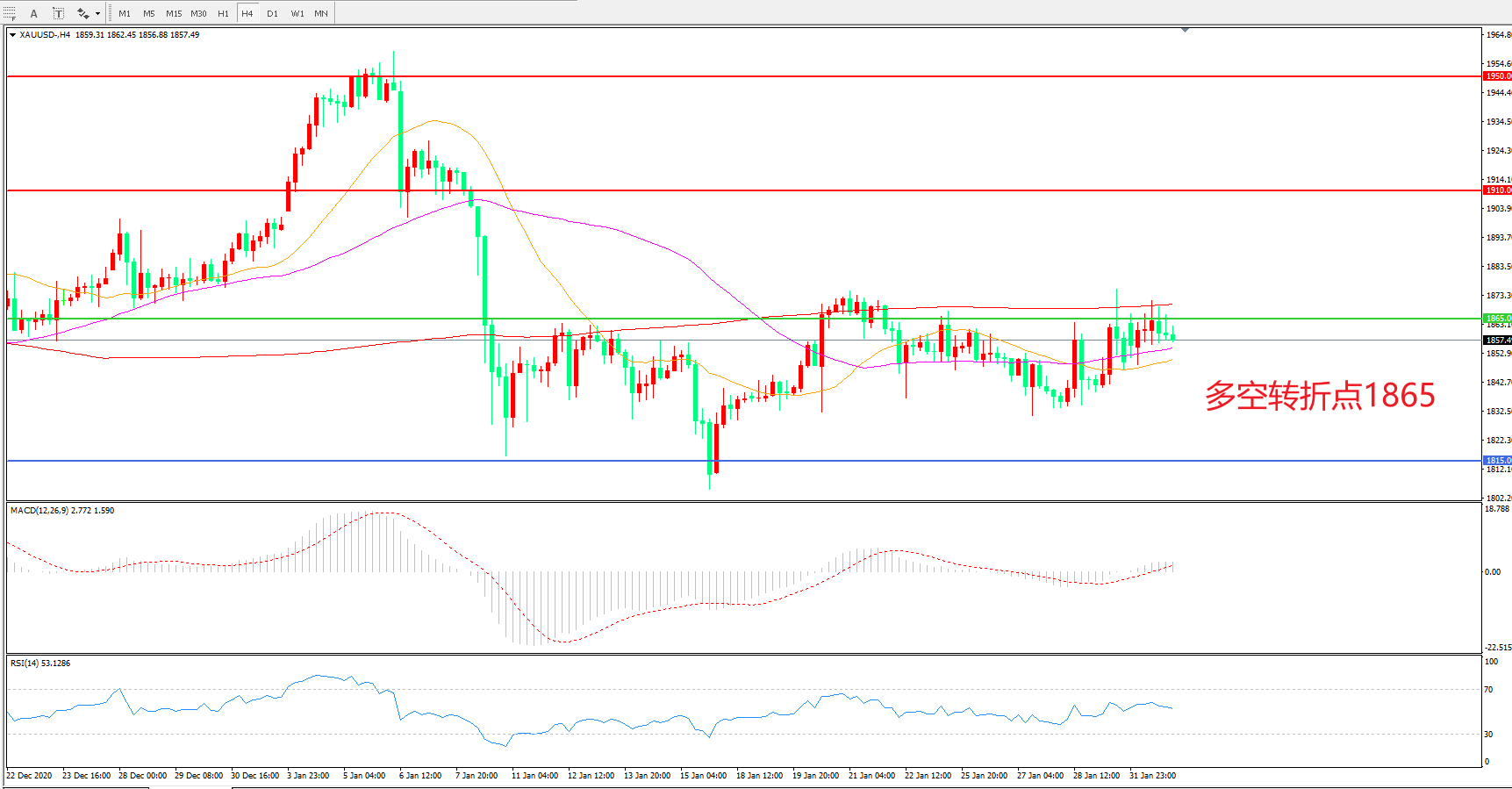 交易策略:在1865.00之下看跌,目标1815.00 1765.00