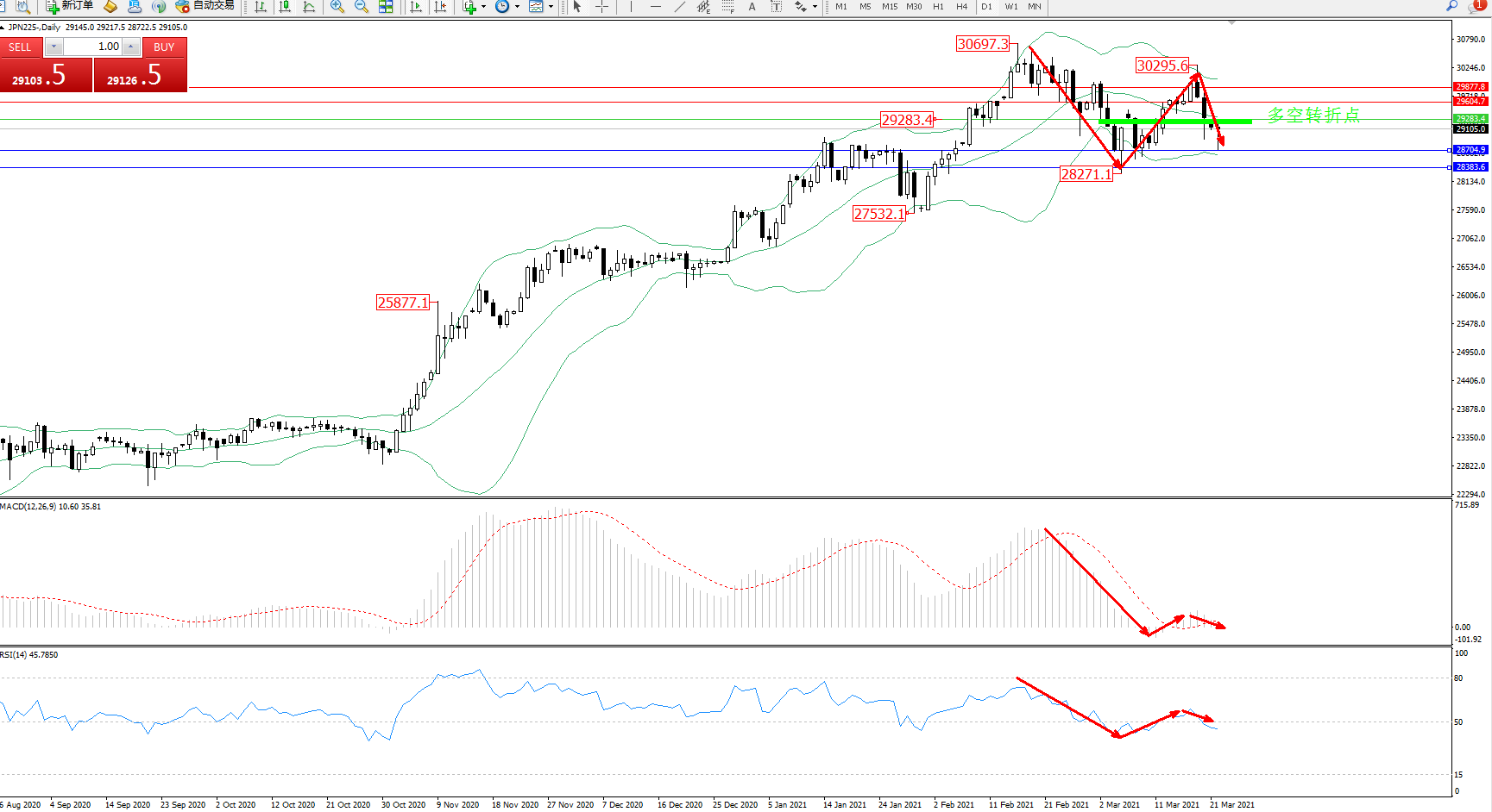 日经225指数3月22日(周一) 收盘下跌620.05点,跌幅2.08%,报29172.00点。鉴于日本央行的信息是保持其持续的宽松立场,日本央行可能并不急于减少债券购买。预计10年期收益率不会达到0.25%这一所容许区间的上限,曲线的变陡会非常温和。超长期债券的减码步伐会非常缓慢。日本央行最重视的似乎是其对进一步降低利率能力的评估,其引入了新的利率机制,鼓励放贷,并限制银行在降息时可能受到的伤害。投资者对美联储维持强力宽松行动前景的重新押注也推动美债收益率回落。然而,这并未改变市场的大局。投资者仍然在评估日本东京奥运会确认不接待境外来客所带来的负面冲击,市场正在观望全球疫情及经济的下一步行动。