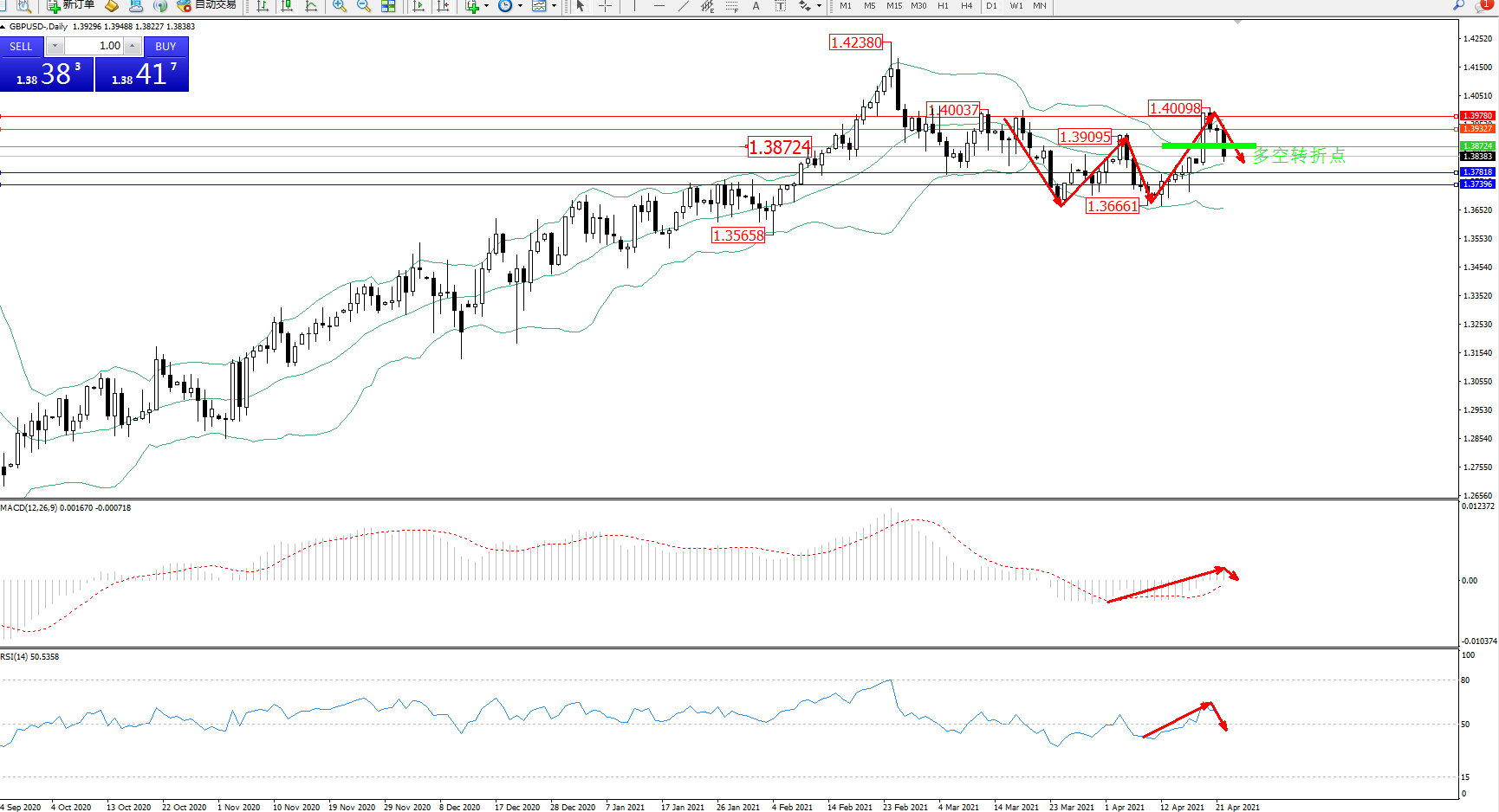 交易策略:1.38724下方看跌,目标1.37818、1.37396