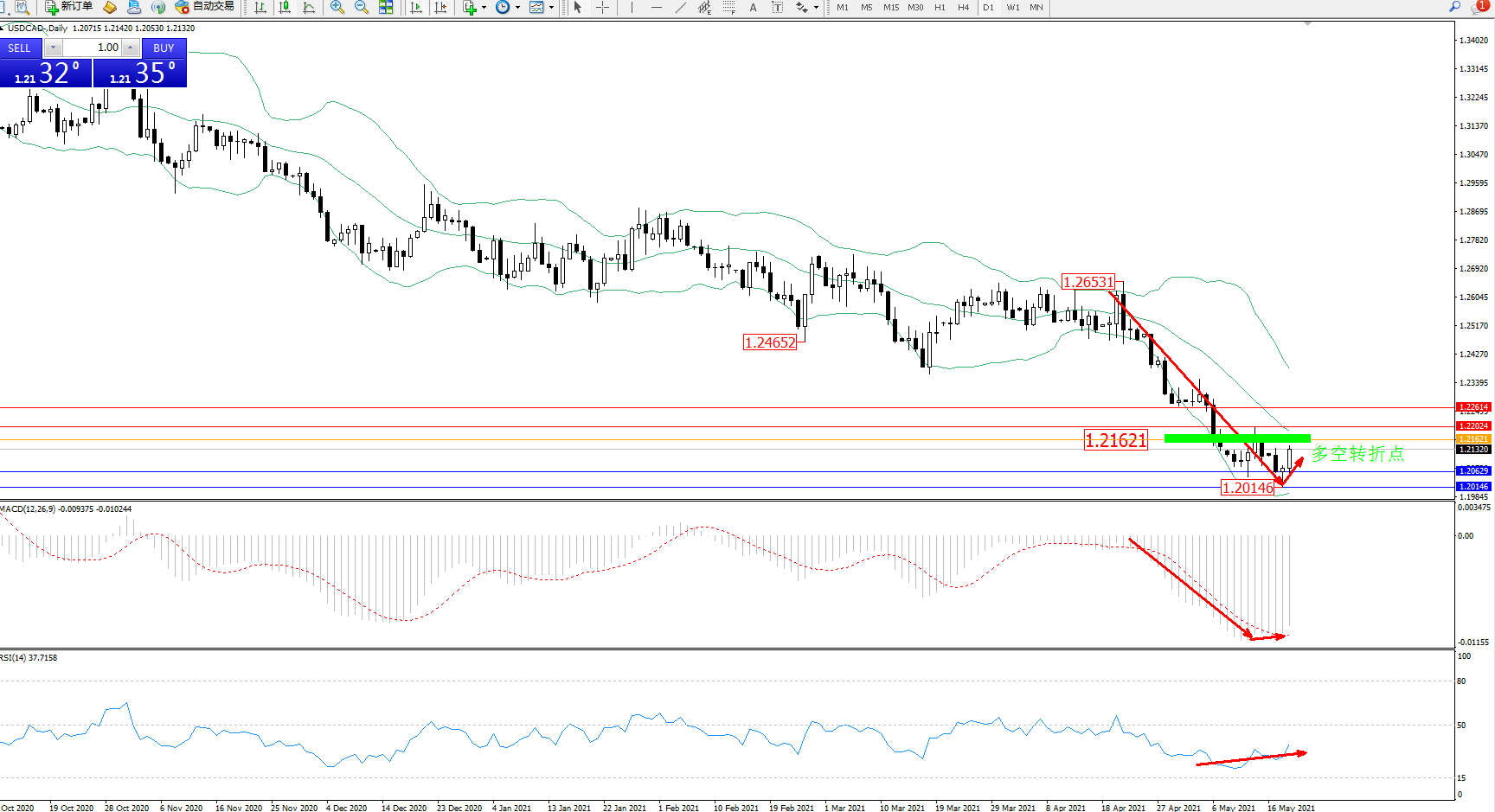 美元加元USDCAD——日K线图显示: