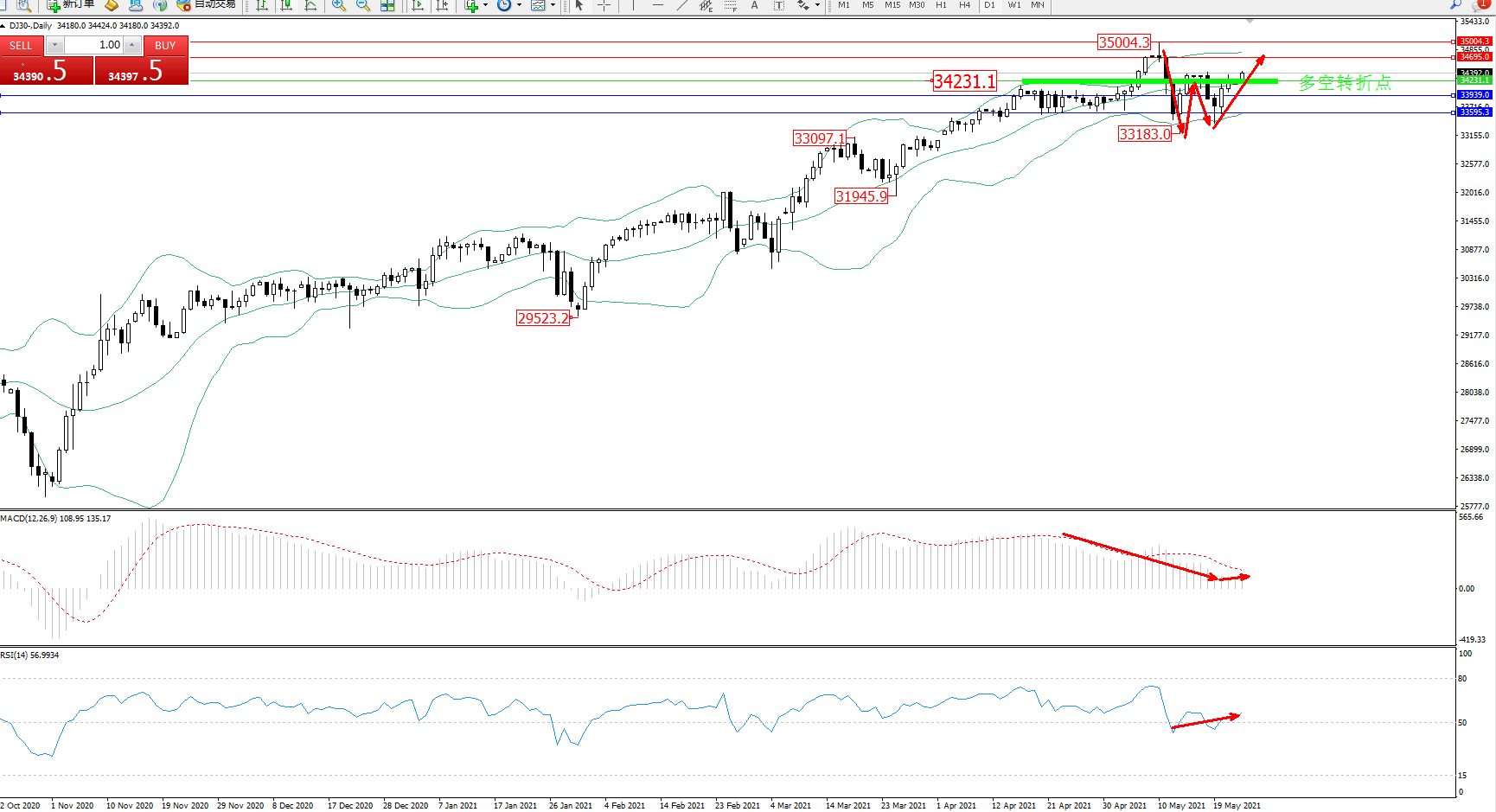 技术点评:多头动力延续布林带指标通道中上轨区间持续震荡上扬,高位抵达35004位置后遇阻回撤,多次纠结于中轨区间维持震荡弱势整理中,低位多头缓慢上攻破中轨附近节点后有继续拉升态势,关注中轨附近节点,布林带指标呈收口平移走势良好,MACD指标处于多头区域高位维持震荡向下移动,RSI指标处于50均衡线附近不断震荡下移中;