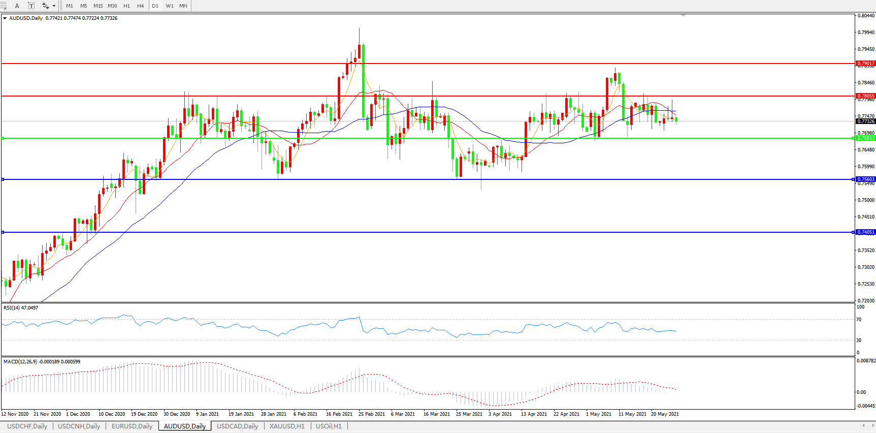 备选策略:0.7680下方看跌,目标0.7560、0.7400
