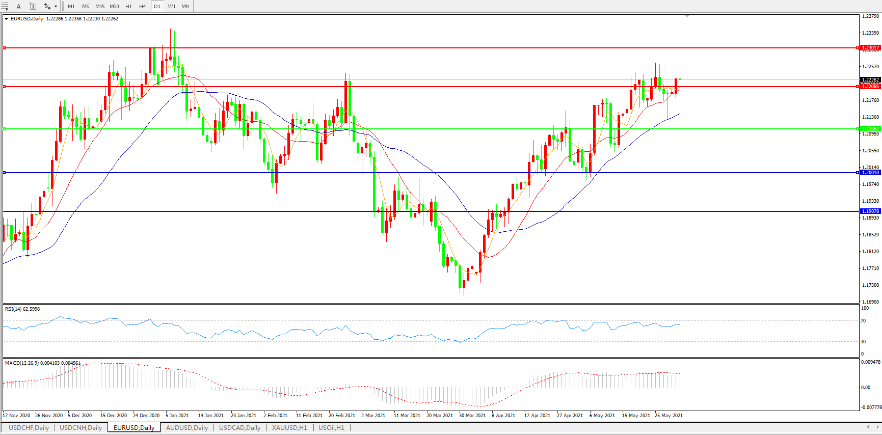 技术面简析:日图均线呈上行态势,汇价整理多日后开始攀升,MACD运行于0轴上但量能开始微缩量,RSI缓步走升,预计短期汇价大概率将进一步上行。