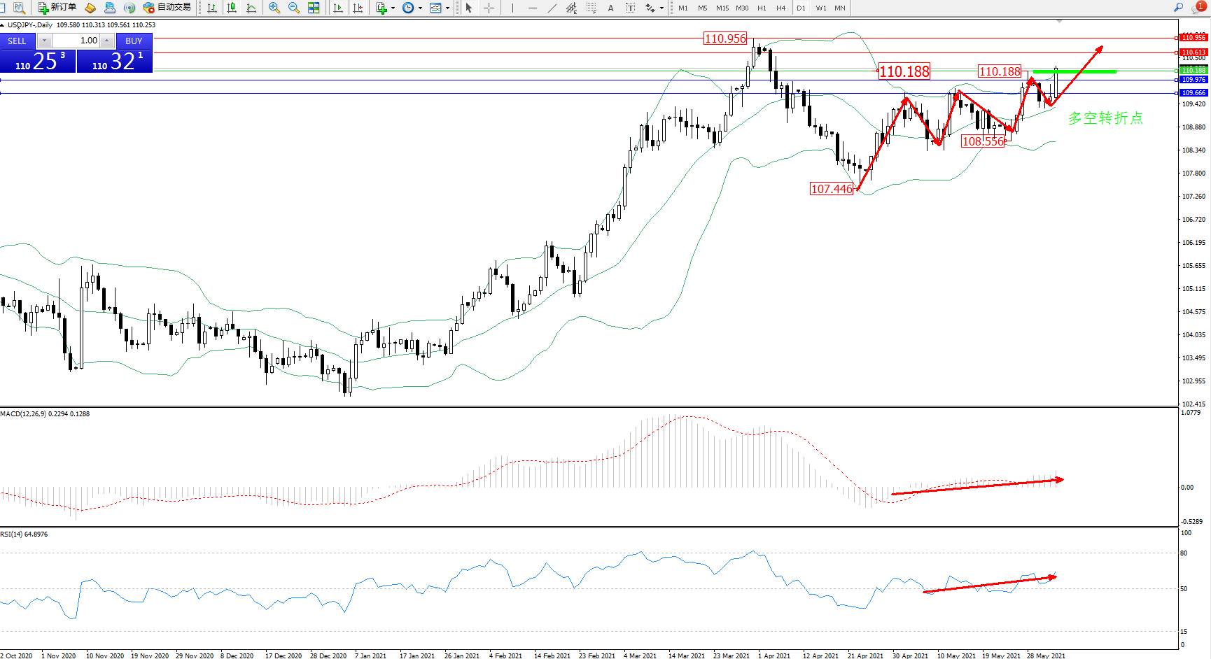 交易策略:110.188上方看涨,目标110.613、110.956