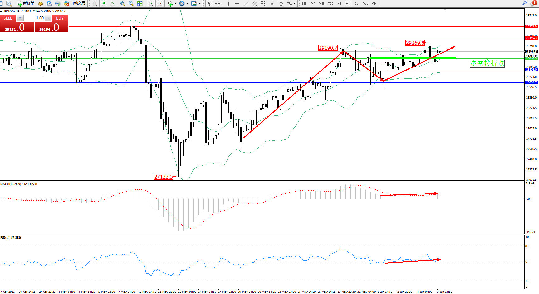 日经225指数6月7日(周一)收盘上涨67.98点,涨幅0.23%,报29009.50点。日本经济再生大臣西村康稔:政府将与日本央行合作以振兴经济,避免通货紧缩。政府必须促进新增长领域,如环境和数字化,且需确保薪资持续上涨。政府应该毫不犹豫地实施财政刺激,这必须包括采取有针对性的、有效的措施。政府将维持促进财政改革的承诺。政府将采取措施保护企业、就业机会,寻求创造新的增长领域,以提振经济。据官方文件草案:日本政府希望日本央行实现2%的通胀目标,并关注经济、物价和金融的发展。日本政府寻求将经济恢复到疫情前水平,决心避免重返通缩的情形。日本政府希望促进企业提高生产力及工人薪酬。日本政府将通过吸引民间需要来促进绿色和数字投资。日本内阁官房长官加藤胜信;正在研究可以应对海外疫情的疫苗护照。没有决定向越南供应新冠疫苗。