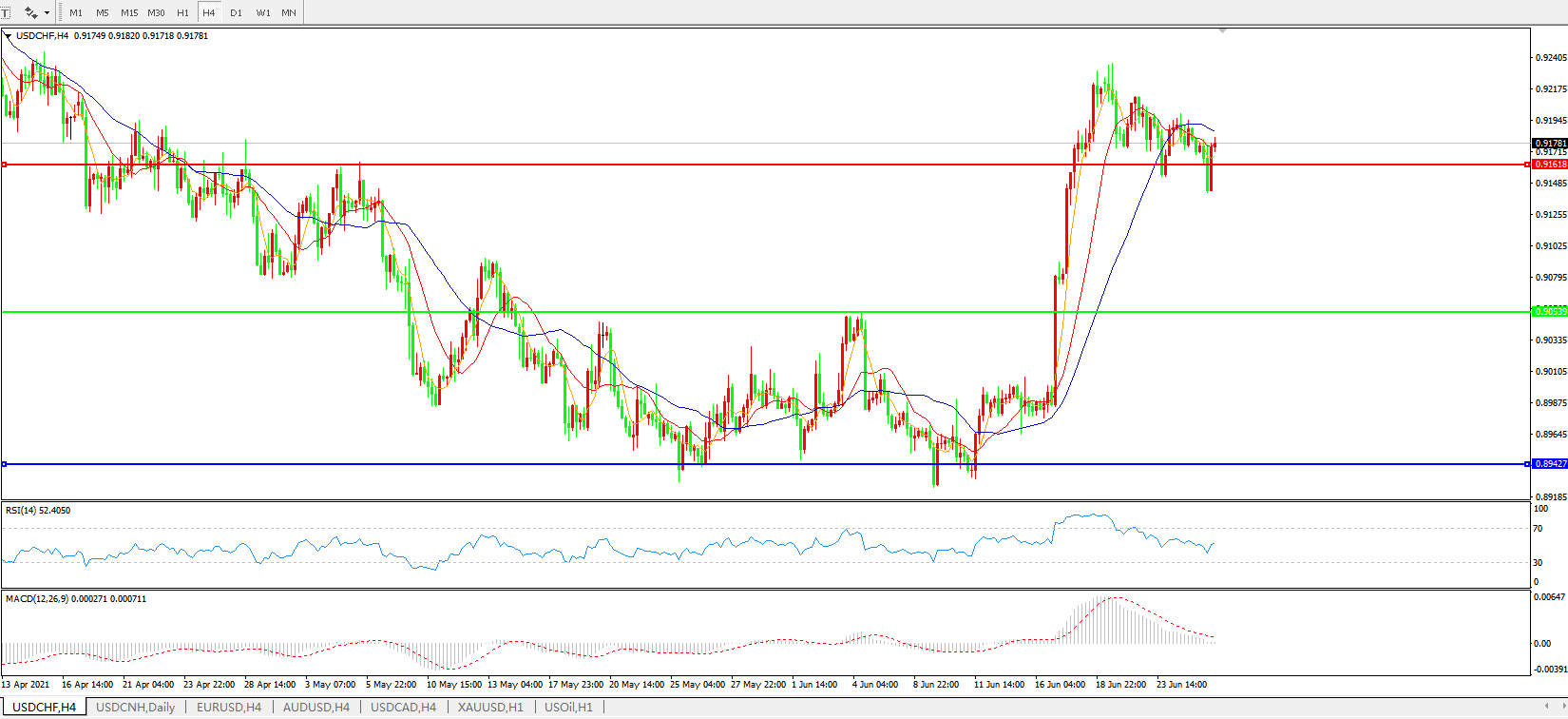 美元兑瑞郎USDCHF    4小时图:
