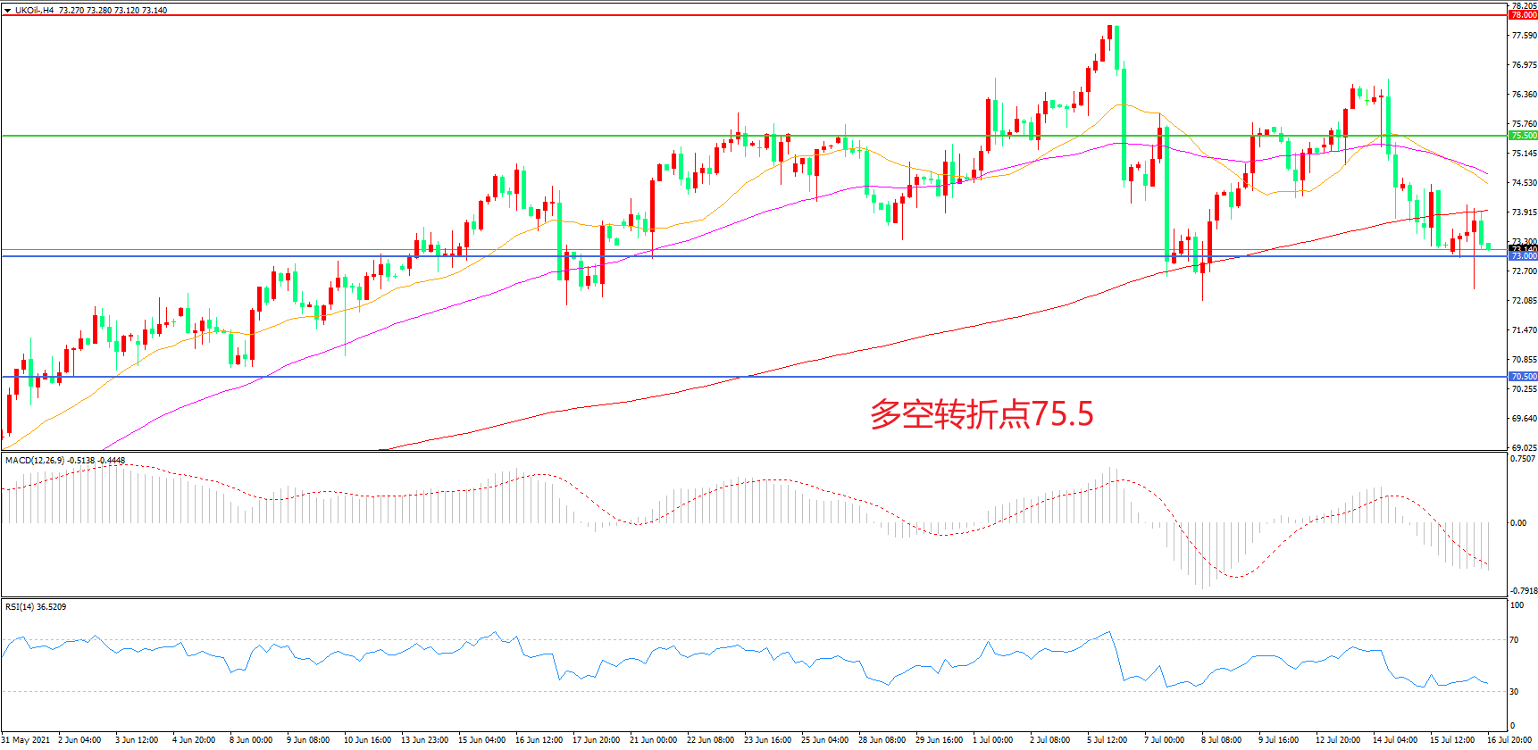 支撑位:73.00 70.50