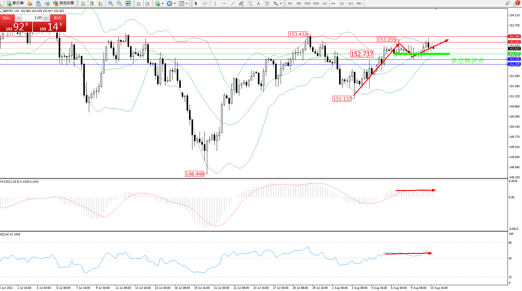 技术点评:多头动力延续布林带指标通道中上轨区间不断向上移动中,高位维持短暂整理平移,多头动力依旧有向上移动态势,布林带指标呈收口走势持续中,MACD指标处于0轴线上方多头区域整理平移,RSI指标纠结于50均衡线上方持续徘徊中;