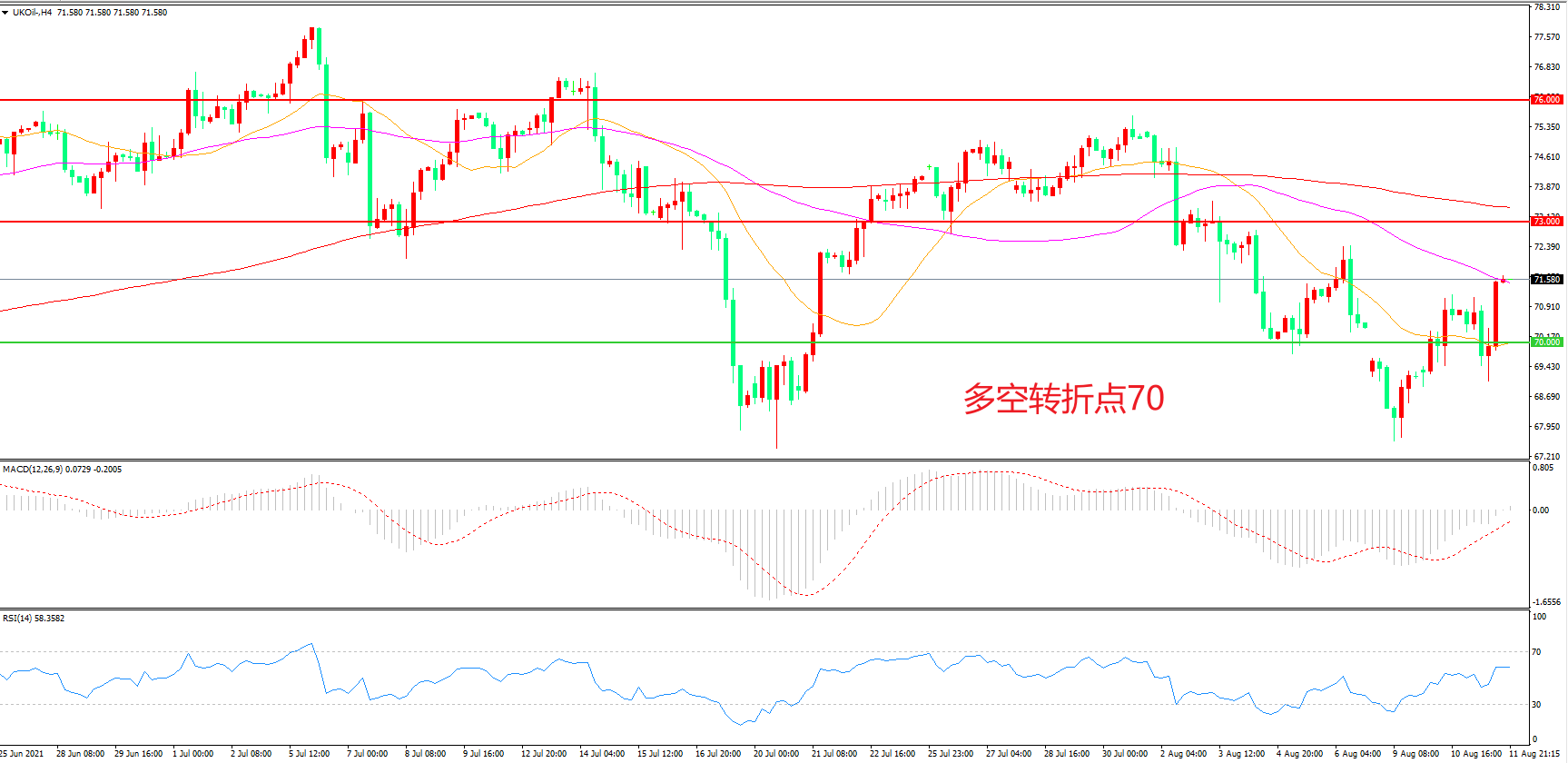 多空转折点:70.00