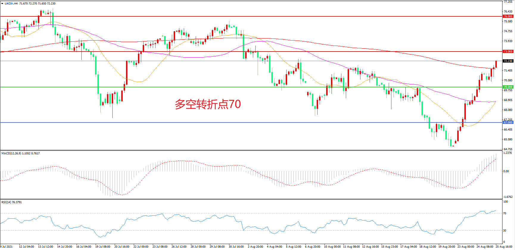 交易策略:在70.00之上看涨,目标73.00                76.00