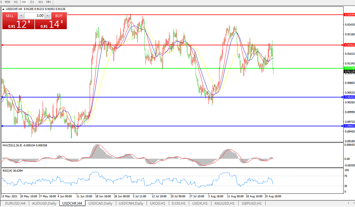 交易策略:0.9120下方看跌,目标0.9040、0.8960