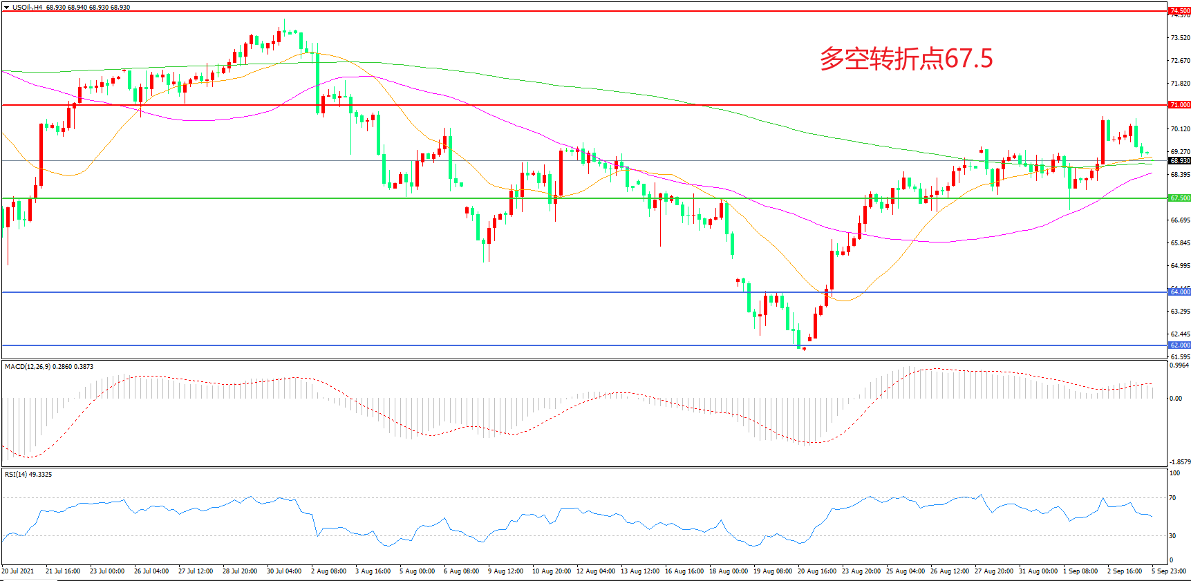 上周,先是墨西哥国家石油公司海上平台起火,之后美国又迎来破坏力巨大的“艾达”飓风冲击,油价在多重利好下一度暴涨,但周五晚间的非农数据表现让市场风险情绪有所回落,美国WTI原油先涨后跌,收报69.20美元/桶。展望未来,糟糕的非农就业数据使美联储延迟购债预期成大概率事件,这有助于缓解宏观流动性方面的担忧,如果供需方面发生改善,油价有望再度走高。