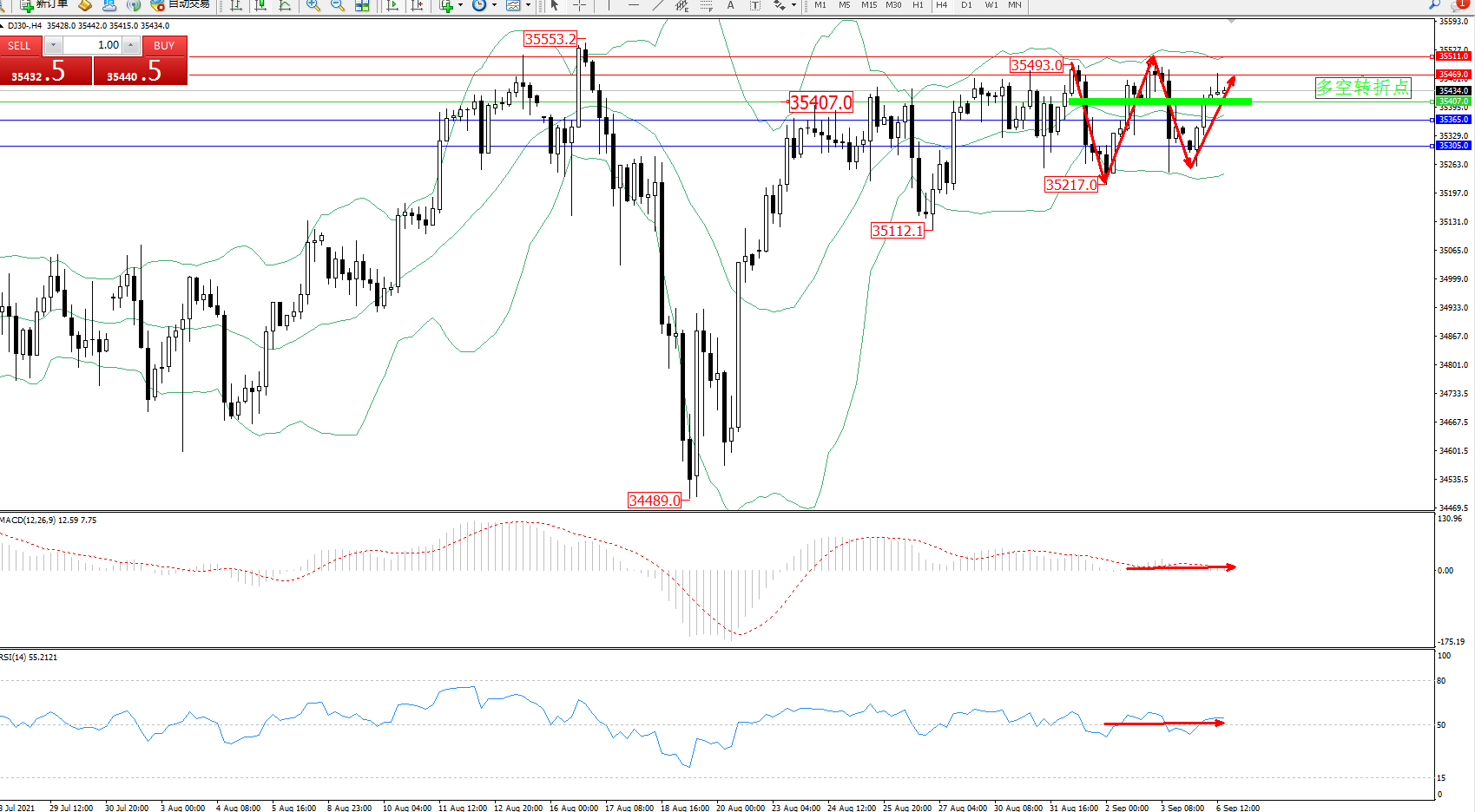 技术点评:高位长时间维持在布林带指标通道内维持宽幅震荡中,多空动力均处于焦灼状态,市场未能给出最终大方向走势指引,布林带指标呈持续整理平移走势中,MACD指标处于0轴线附近弱势徘徊中,RSI指标处于50均衡线附近持续整理中;