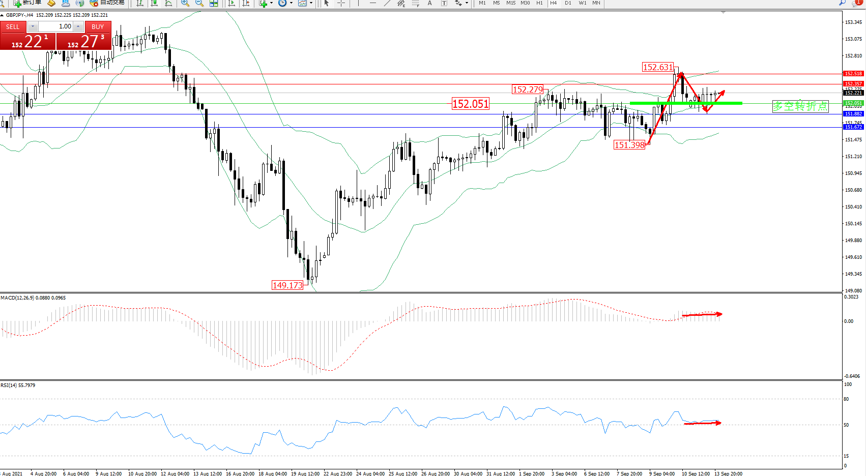技术点评:多头动力持续震荡上扬,突破布林带指标上轨附近节点抵达152.631位置后遇阻回撤,短期多头动力开始持续拉升上移,或维持在中上轨区间持续震荡,布林带指标呈收口走势中,MACD指标处于0轴线上方弱势徘徊,RSI指标处于50均衡线上方喘息震荡中;