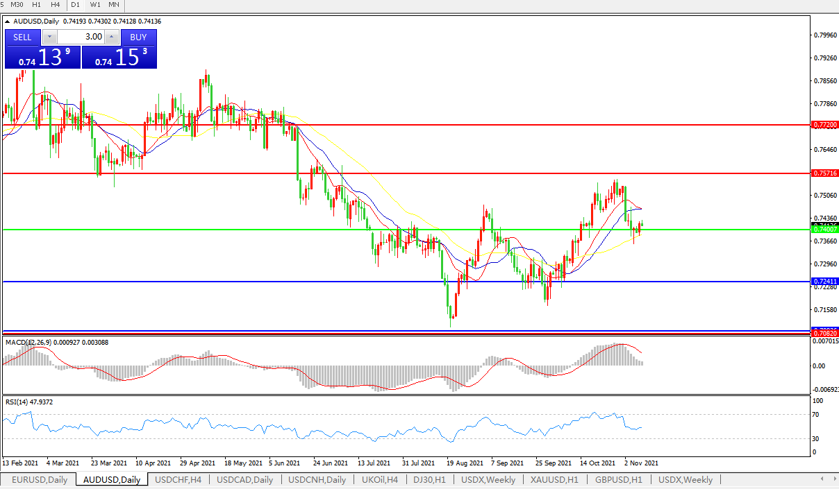 备选策略:0.7400上方看涨,目标0.7570、0.7720