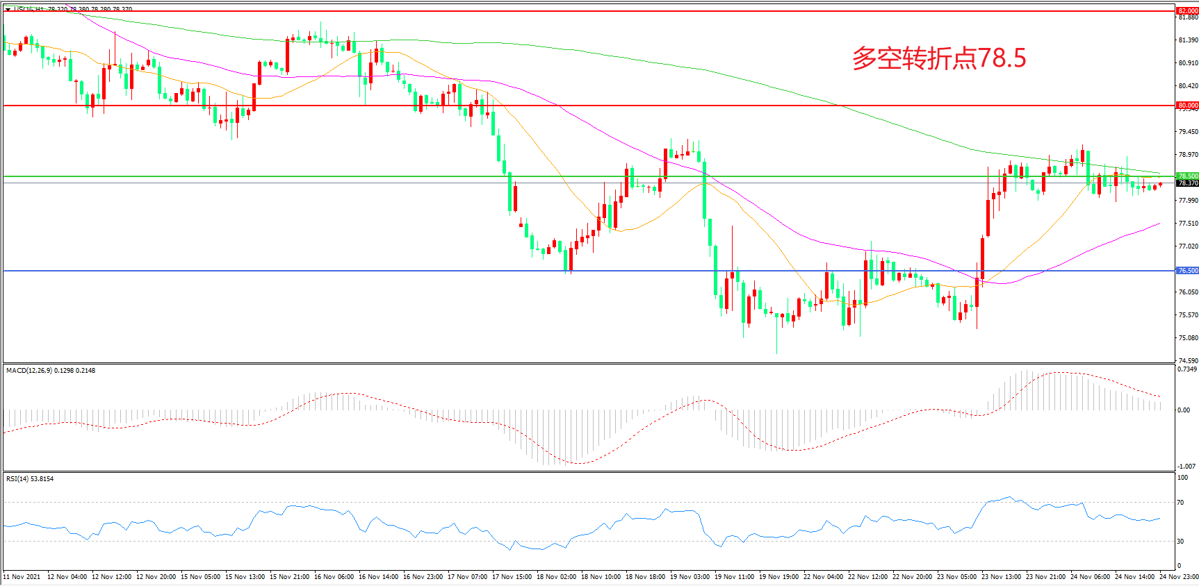 交易策略:在78.50之上看涨,目标80.00               82.00